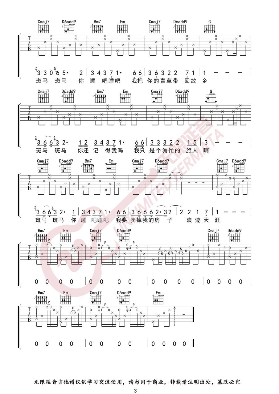 斑马斑马吉他谱,无限延音男生版本歌曲,G调指弹简谱,新手弹唱