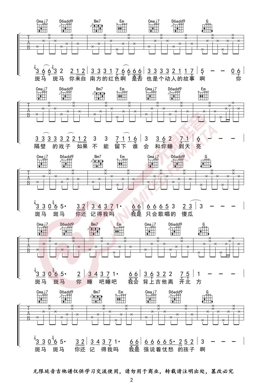 如果您想要学习无限延音男生版本演唱的《斑马斑马》的吉他谱,那么您来对地方了。这首弹唱简谱,适合新手入门学习G调教学吉他谱。这是一首非常好听的歌曲,下面高清图片谱由极网吉它谱更新分享。如果您是吉他爱好者请关注我们的网站!