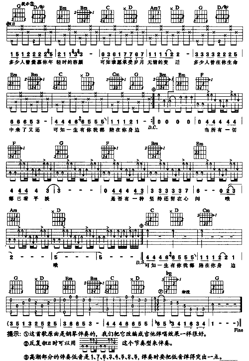 永远都会在吉他谱,取自演唱的歌曲是经典G调指弹编配的曲谱,非常好听的弹唱曲谱,下面3张高清曲谱由吉曲谱网为大家更新分享,有喜欢吉它的朋友欢迎关注!