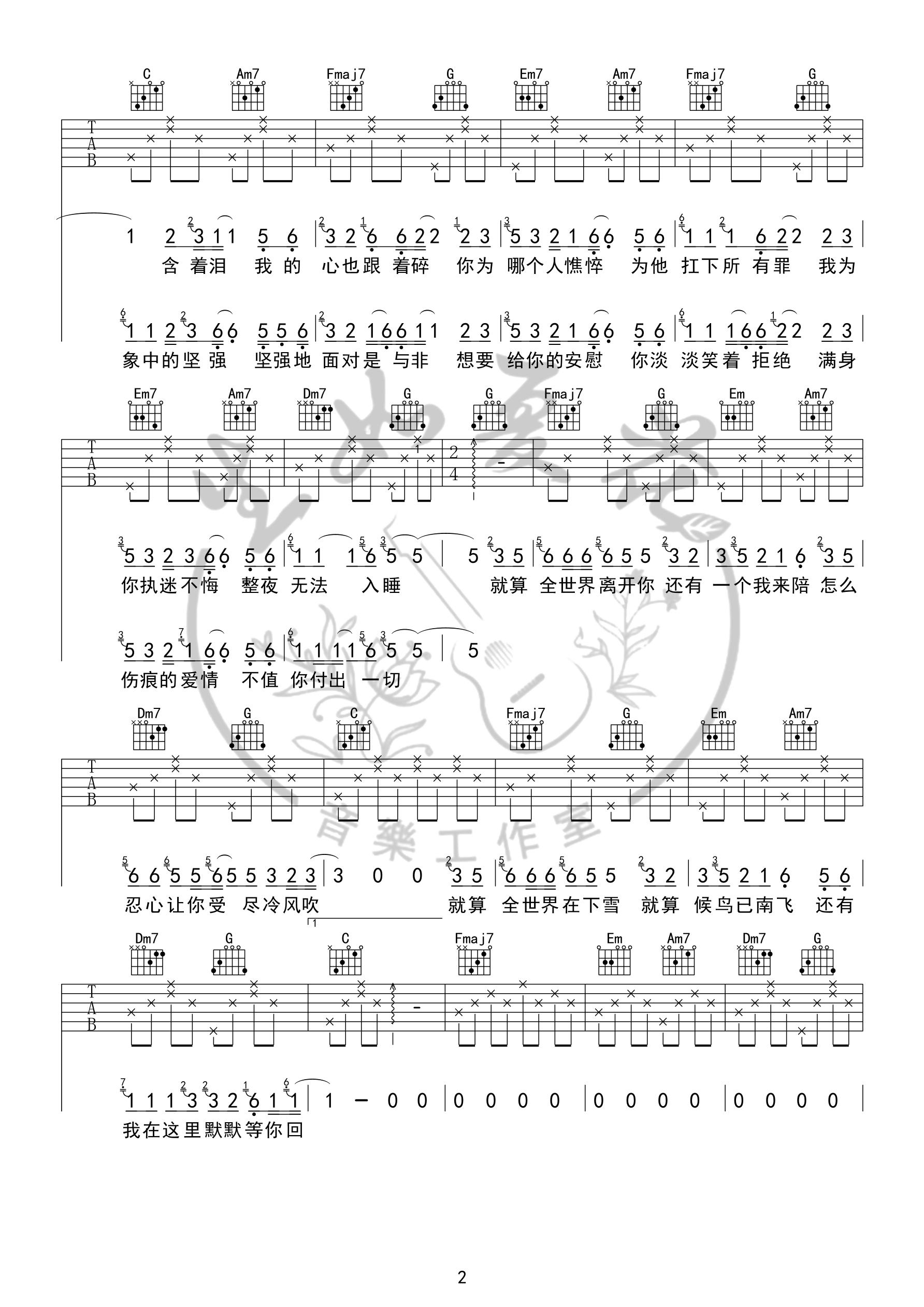 这首还有我吉他谱 C调简单版_生如夏花音乐工作室编配_任贤齐/G2er,,难度低难度。任贤齐歌曲原调为C调,这里曲谱采用C调指法进行编配,演唱时不夹变调夹即可保持原调,也可根据个人嗓音情况选择,,也可自由发挥。