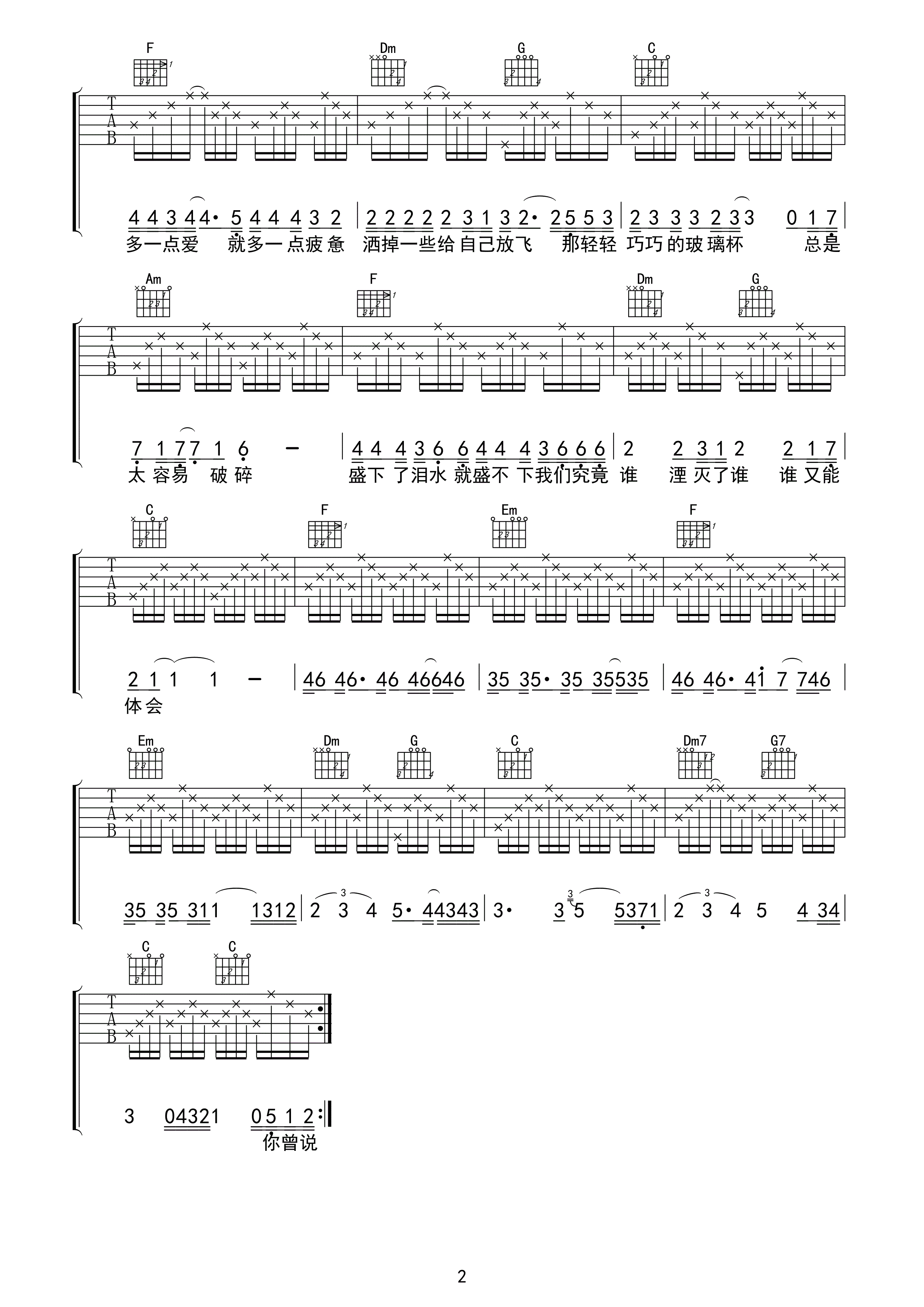 以上就是4/4节拍 C调版的玻璃杯弹唱简谱,如果正是您所寻找的六线高清图片谱,希望能收藏本站,这里会完全免费且源源不断更新各种曹卉娟简单入门曲谱
