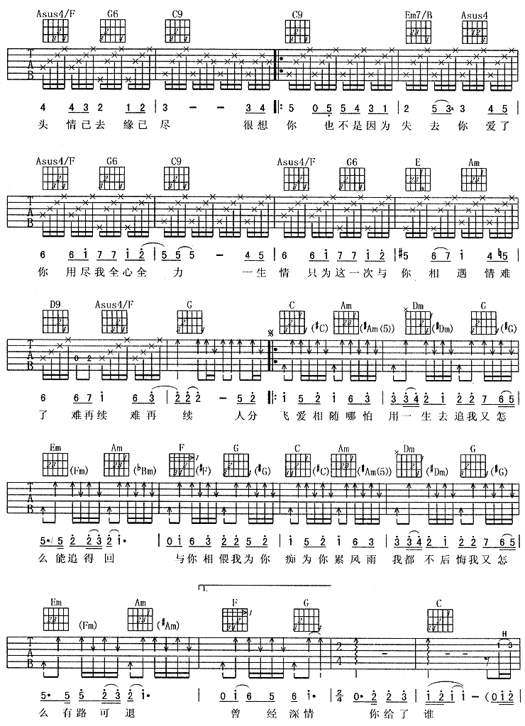 《爱相随》吉他谱,由周华健演唱的,流行弹唱,爱相随六线谱,C调制法,一共3张高清弹唱图片谱,采用'4/4拍子,拍速为60-80,单吉他,弹奏难度为:简单,吉他部落 jita2012.com整理上传。爱相随 吉他简谱爱相随 歌词 作曲 : 刘志宏 作词 : 刘思铭别想你??忍不住我提醒自己伤了心??有些事也要过去心很痛??痛的不想再做我自己别回头??情已去缘已尽很想你??也不是因为失去你爱了你