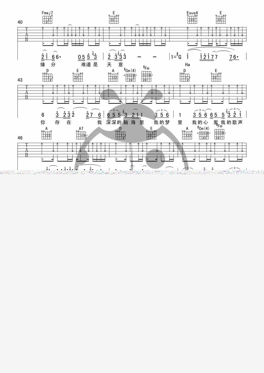 够爱吉他谱,取自演唱的歌曲是经典F调指弹编配的曲谱,非常好听的弹唱曲谱,下面3张高清曲谱由吉曲谱网为大家更新分享,有喜欢吉它的朋友欢迎关注!