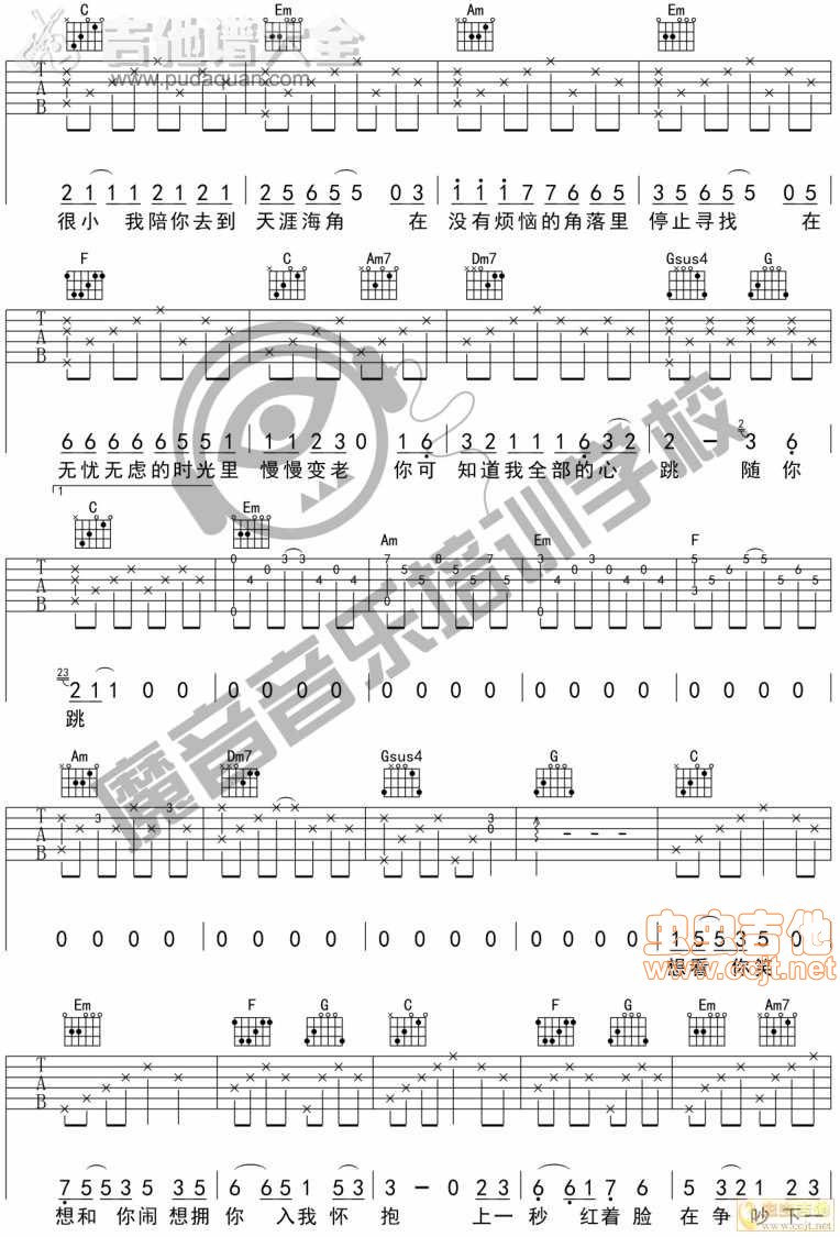 一次就好《》插曲吉他谱,原版歌曲,简单C调弹唱教学,六线谱指弹简谱4张图
