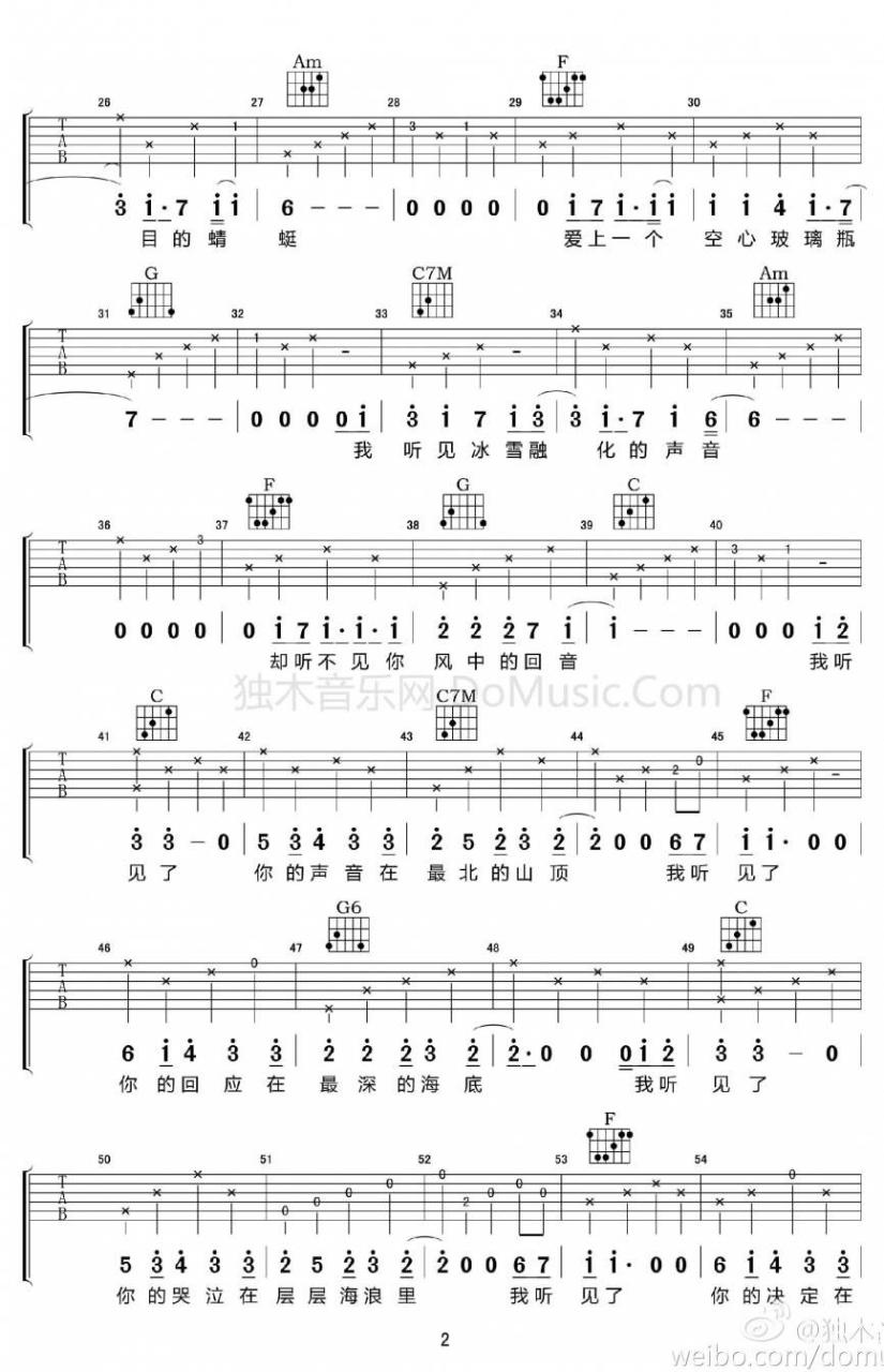 无声的你吉他谱,取自演唱的歌曲是经典C调指弹编配的曲谱,非常好听的弹唱曲谱,下面1张高清曲谱由吉曲谱网为大家更新分享,有喜欢吉它的朋友欢迎关注!