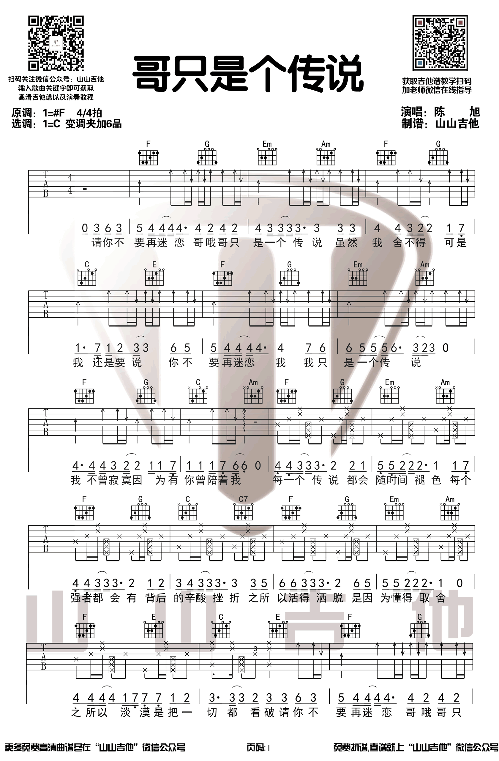 以上就是C调哥只是个传说吉它谱,如果正是您所寻找的陈旭六线高清图片谱,希望能收藏本站,这里会源源不断更新各种的曲谱。