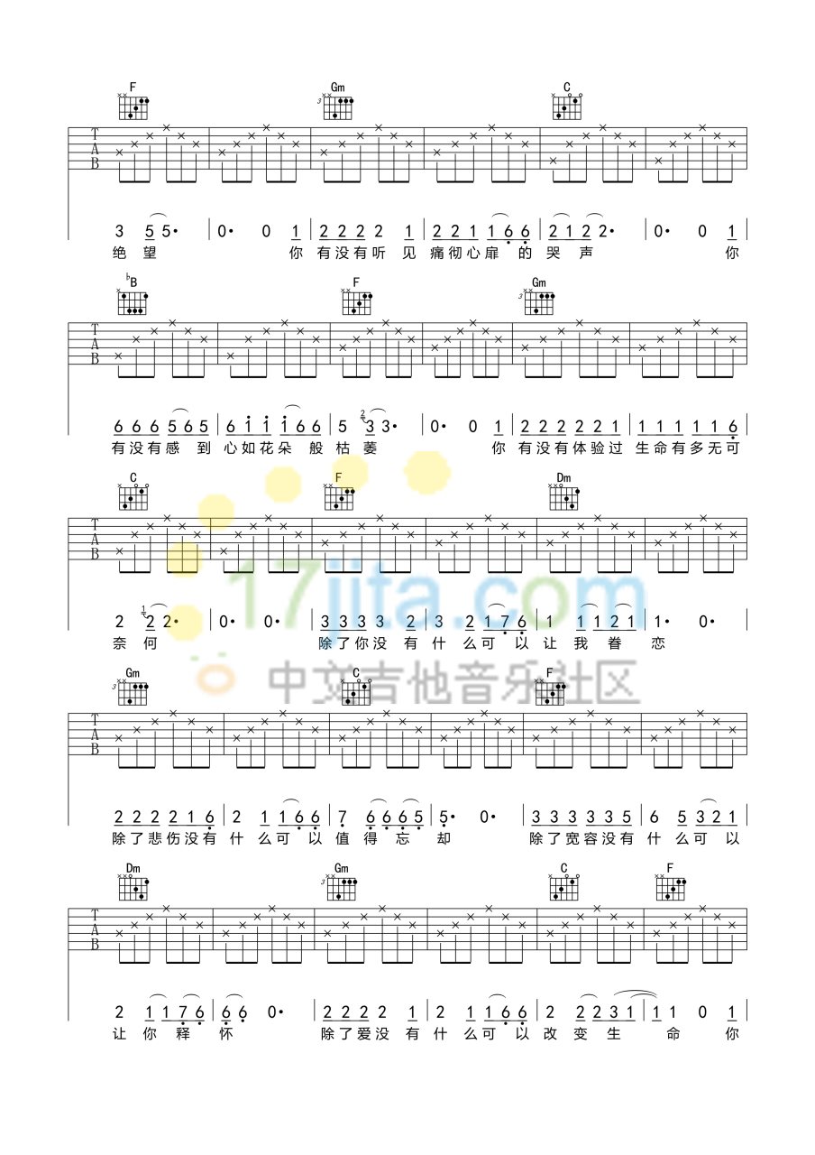 够爱吉他谱,取自演唱的歌曲是经典F调指弹编配的曲谱,非常好听的弹唱曲谱,下面3张高清曲谱由吉曲谱网为大家更新分享,有喜欢吉它的朋友欢迎关注!