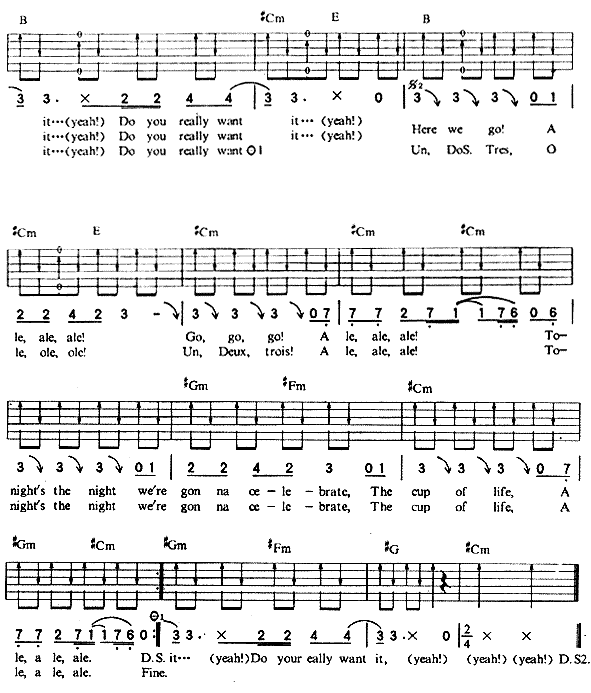 以上就是4/4节拍E调版的The Cup Of Life弹唱简谱完整内容,希望这个简单六线高清图片教学谱能帮到您,也希望您能收藏本站,这里每天源源不断更新各种简单入门曲谱。