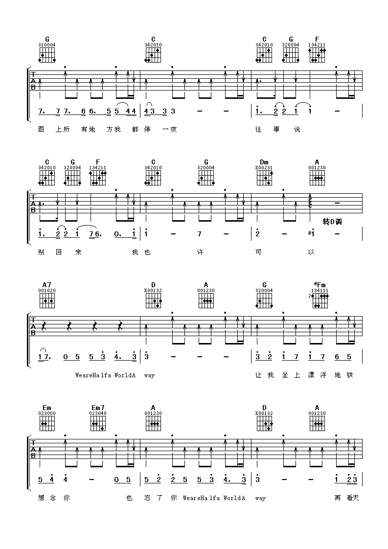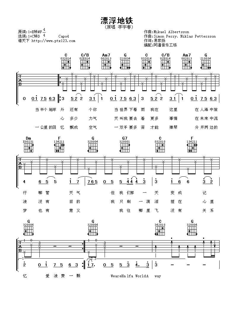 以上就是李宇春的D调版的(漂浮地铁)曲谱全部内容,如果正是您所寻找的六线高清图片谱,希望能收藏本站,这里会源源不断更新各种李宇春的曲谱。如果你是新手或入门学习者,我们特别推荐网站上的简单版谱子和教学视频。如果你想演唱歌曲,还可以选择带有歌词和伴奏的吉他谱来进行前奏弹奏。