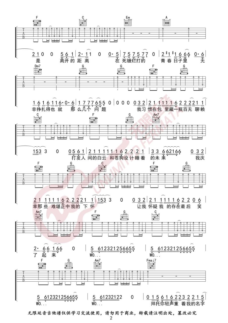 我的名字吉他谱,焦迈奇歌曲,C调指弹简谱,新手弹唱无限延音编配版本版本