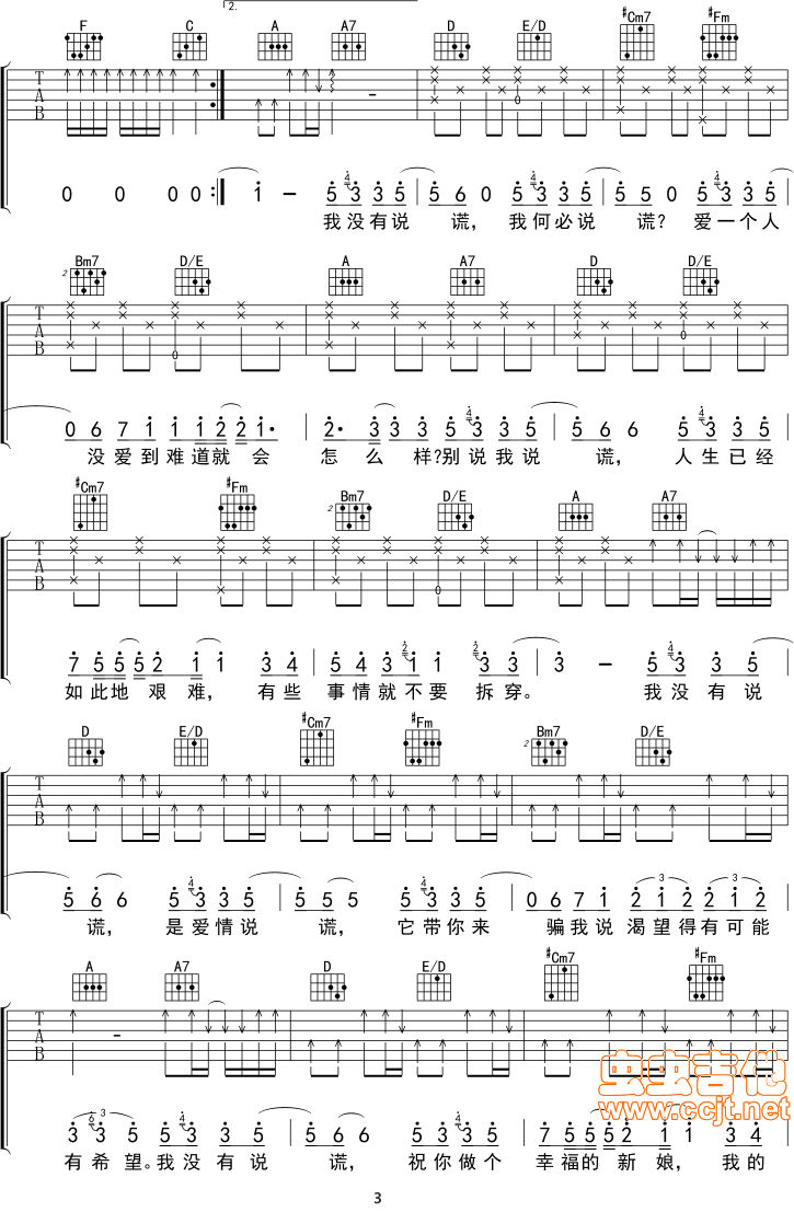 说谎--图片吉他谱,原版歌曲,简单B调弹唱教学,六线谱指弹简谱4张图