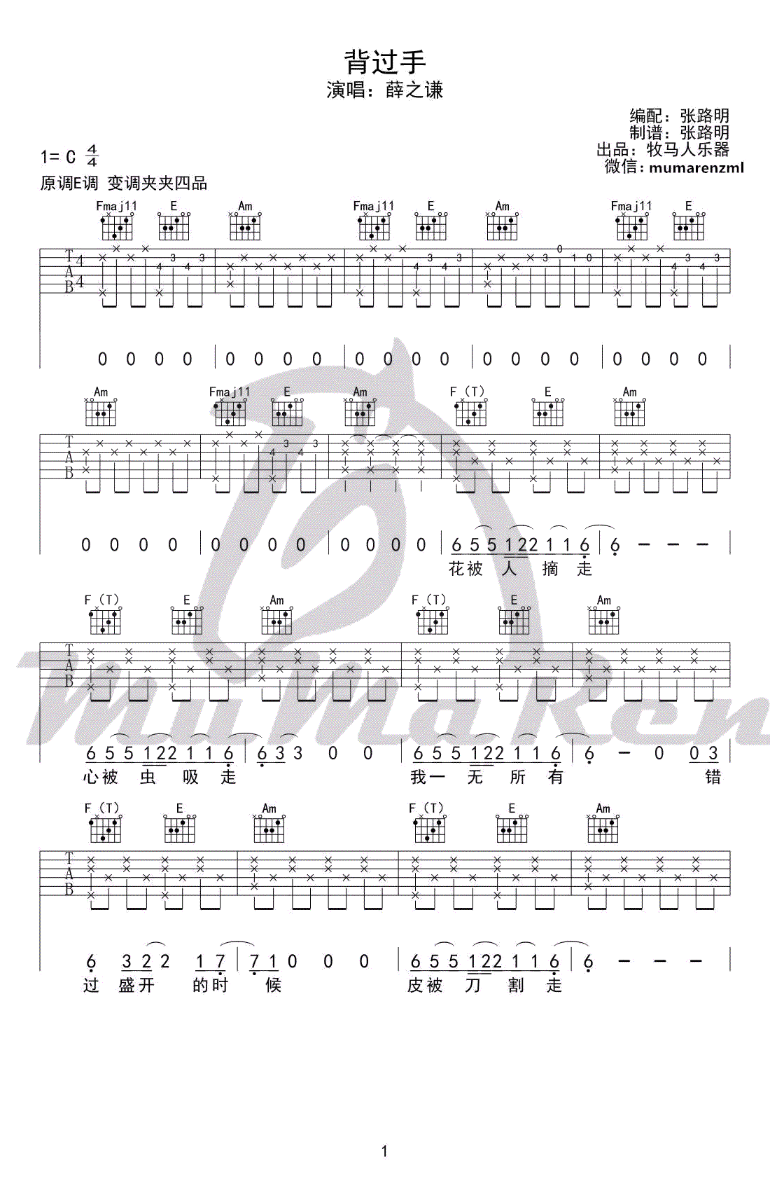 《《背过手》吉他谱_薛之谦_C调原版弹唱高清六线谱免费分享,《背过手》是由薛之谦作词、作曲并演唱的歌曲,这首《背过手》一韵到底,初听的时候可能会感觉有些许的压抑,这像是一首情歌,又像是做人的道理,其弦外有音懂的人自然会懂。薛之谦唱这个歌曲的时候一定拥有非常复杂的情感,用很有张力的声音进行表达。重要的是,这个歌曲的歌词非常狠,这种“狠”呈现出无奈的情绪,想要爆发却无从下手。
