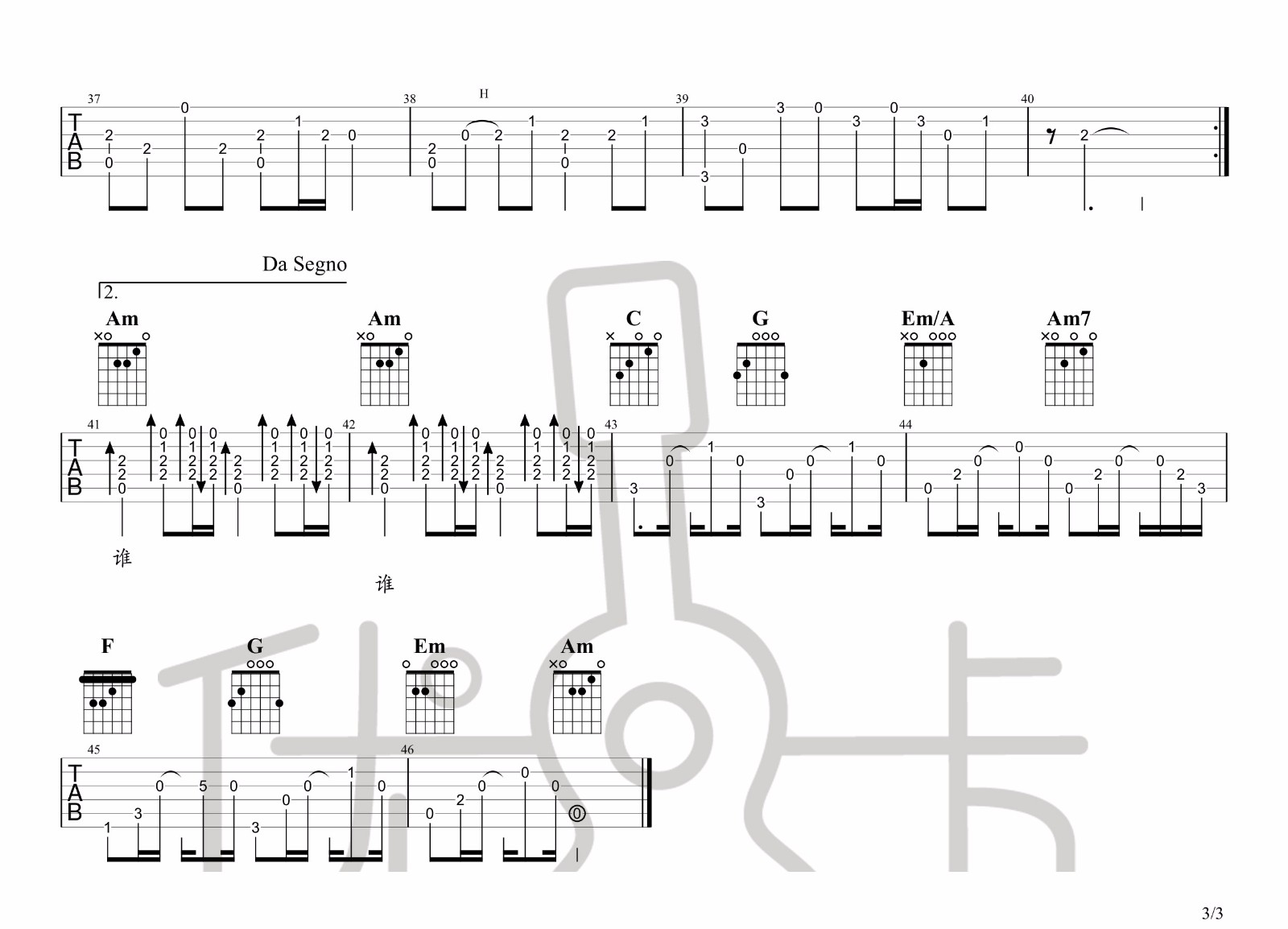 歌曲选自(萧音弥漫)专辑非常好听的弹唱曲谱,下面3张 高清曲谱由吉它谱网为大家更新分享,有喜欢吉它的朋友欢迎关注!