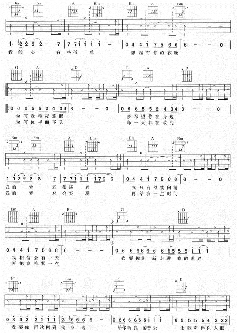 没有她世界依然在绽放吉他谱,取自演唱的歌曲是经典E调指弹编配的曲谱,非常好听的弹唱曲谱,下面5张高清曲谱由吉曲谱网为大家更新分享,有喜欢吉它的朋友欢迎关注!