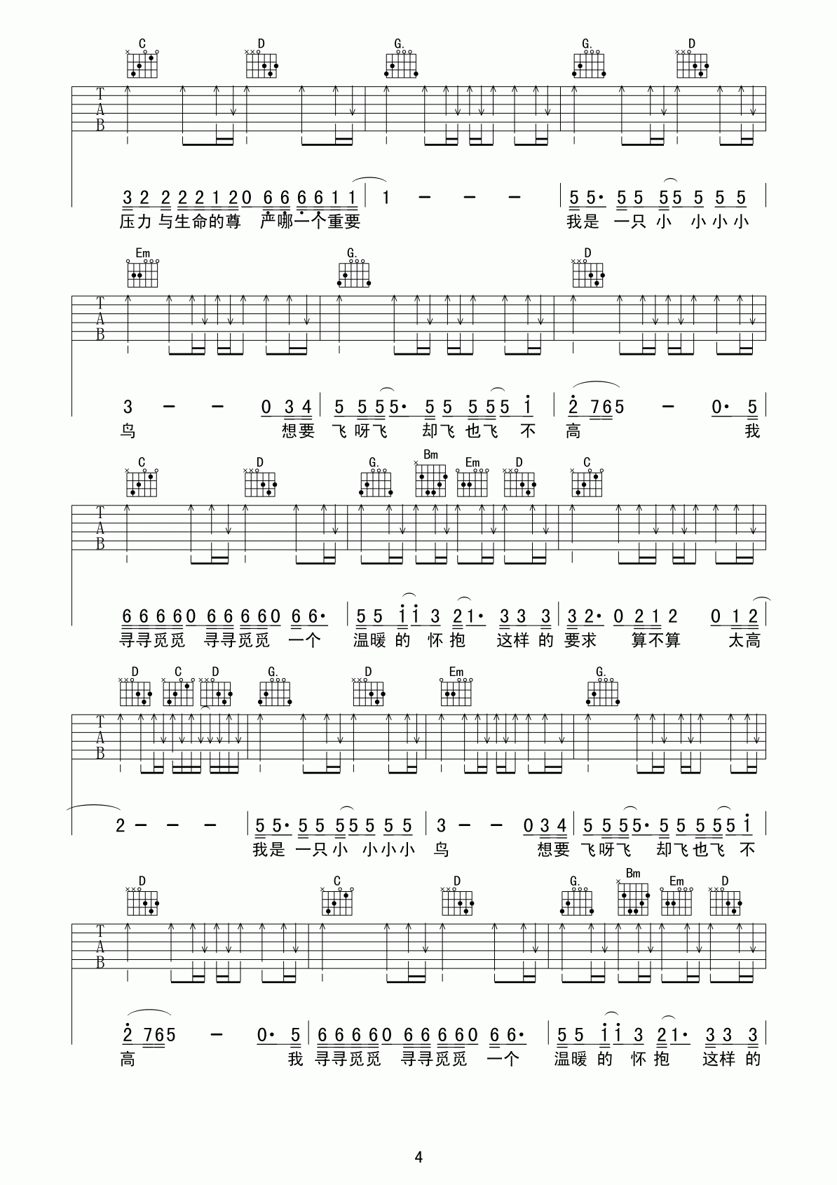 以上就是4/4节拍 G调版的我是一只小小鸟弹唱简谱,如果正是您所寻找的六线高清图片谱,希望能收藏本站,这里会完全免费且源源不断更新各种任贤齐简单入门曲谱