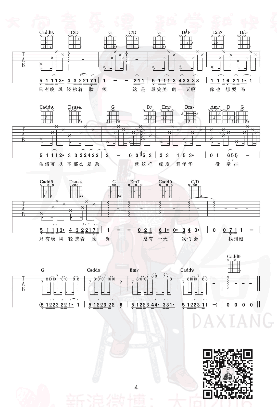 静止吉他谱,原版歌曲,简单G调弹唱教学,六线谱指弹简谱4张图