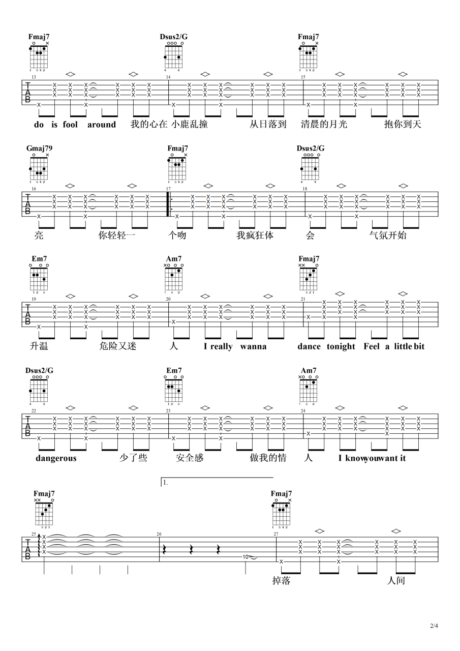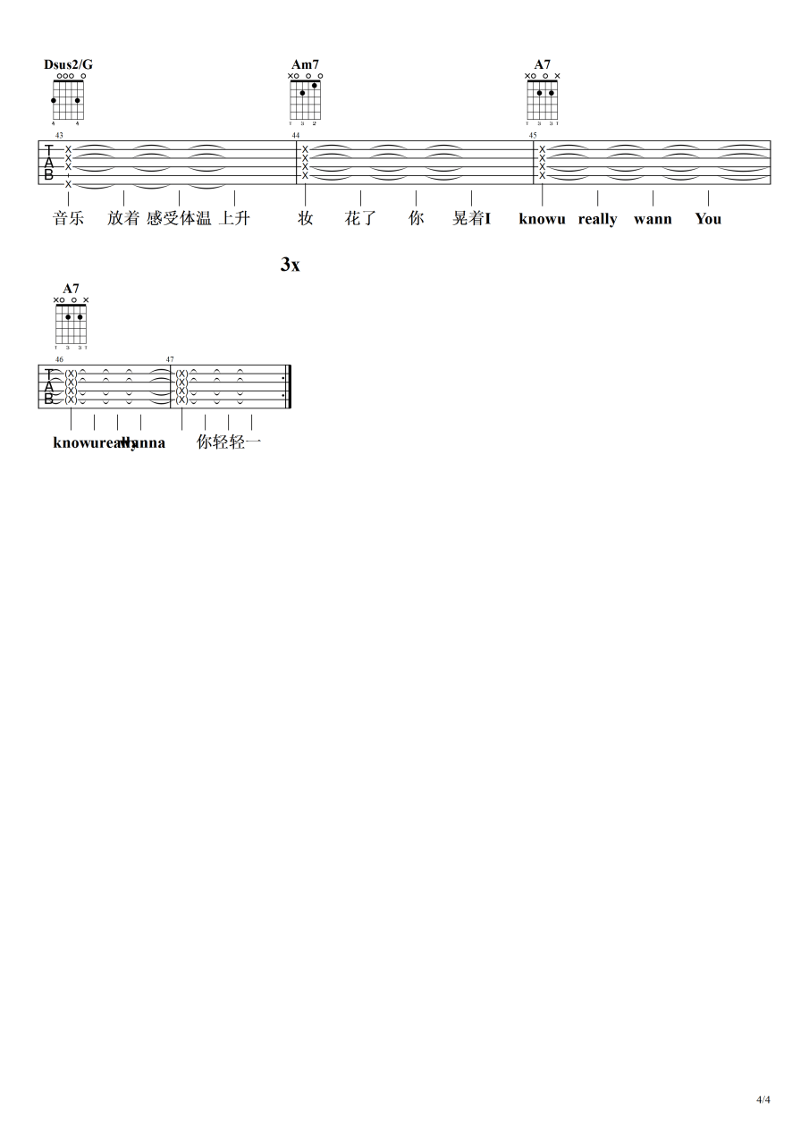 这首歌曲的曲谱适合初学者弹奏,选用C调支付指法,变调夹1品弹奏。这首歌曲由蔡徐坤演唱,一时间成了各大音乐平台和短视频平台的宠儿,性感抚媚的嗓音受到了很多人的喜爱,特别是那一句经典的你轻轻一个吻,我疯狂体会,感觉就像是被爱情的甜蜜滋味所包围一样,这或许就是很多人喜欢这首歌曲的原因吧,因为能够感受到幸福甜蜜的滋味。