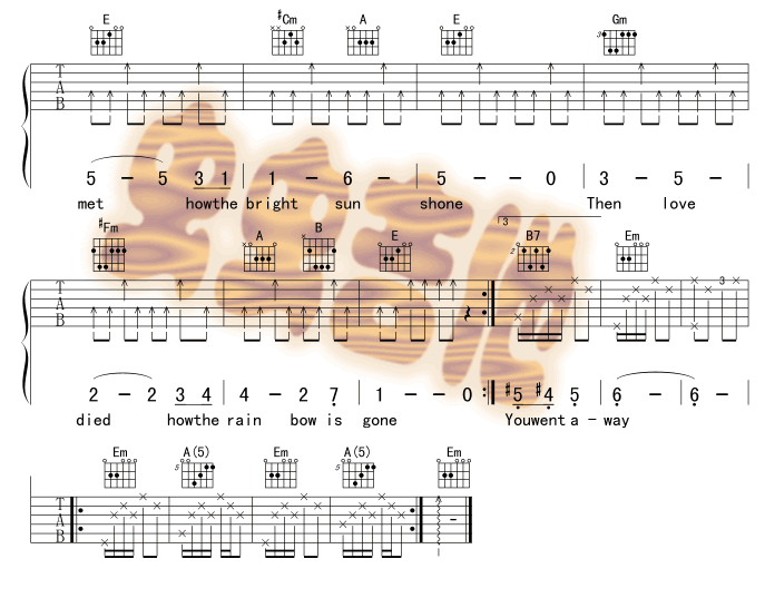 永远都会在吉他谱,取自演唱的歌曲是经典G调指弹编配的曲谱,非常好听的弹唱曲谱,下面3张高清曲谱由吉曲谱网为大家更新分享,有喜欢吉它的朋友欢迎关注!