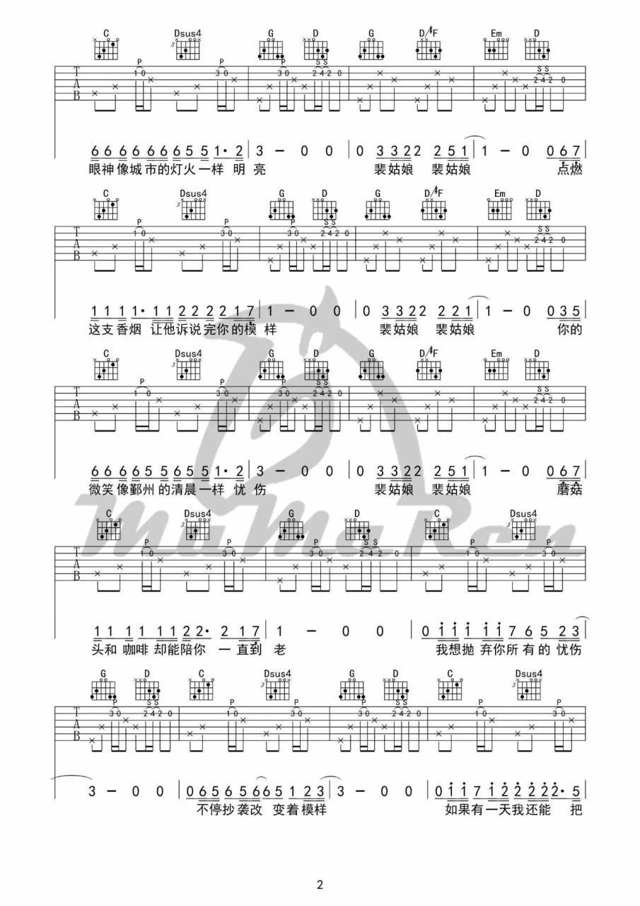 如果您想要学习马融演唱的《墨菲》的吉他谱,那么您来对地方了。这首弹唱简谱这个完整版弹唱简谱是由牧马人制谱编配的,适合新手入门学习G调教学吉他谱。这是一首非常好听的歌曲,下面高清图片谱由极网吉它谱更新分享。如果您是吉他爱好者请关注我们的网站!