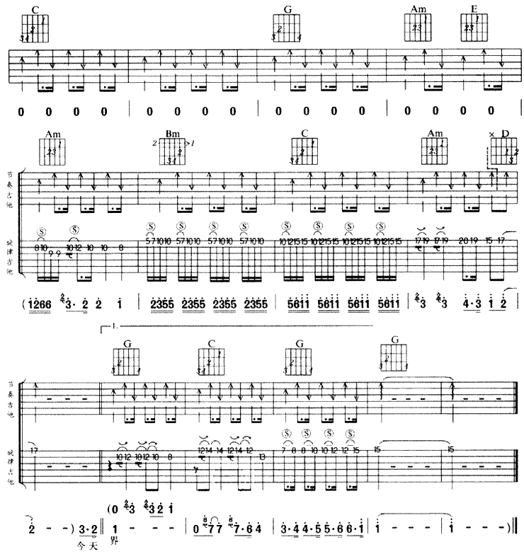 好好世界吉他谱,它是演唱的歌曲,是一首经典歌曲编配的F调指弹六线简谱,这首歌的歌词让我想起了自己的经历。是非常好听又简单的吉他弹唱曲谱,下面3张高清完整版图片谱由曲谱网为大家更新分享,有喜欢吉它的朋友欢迎关注!