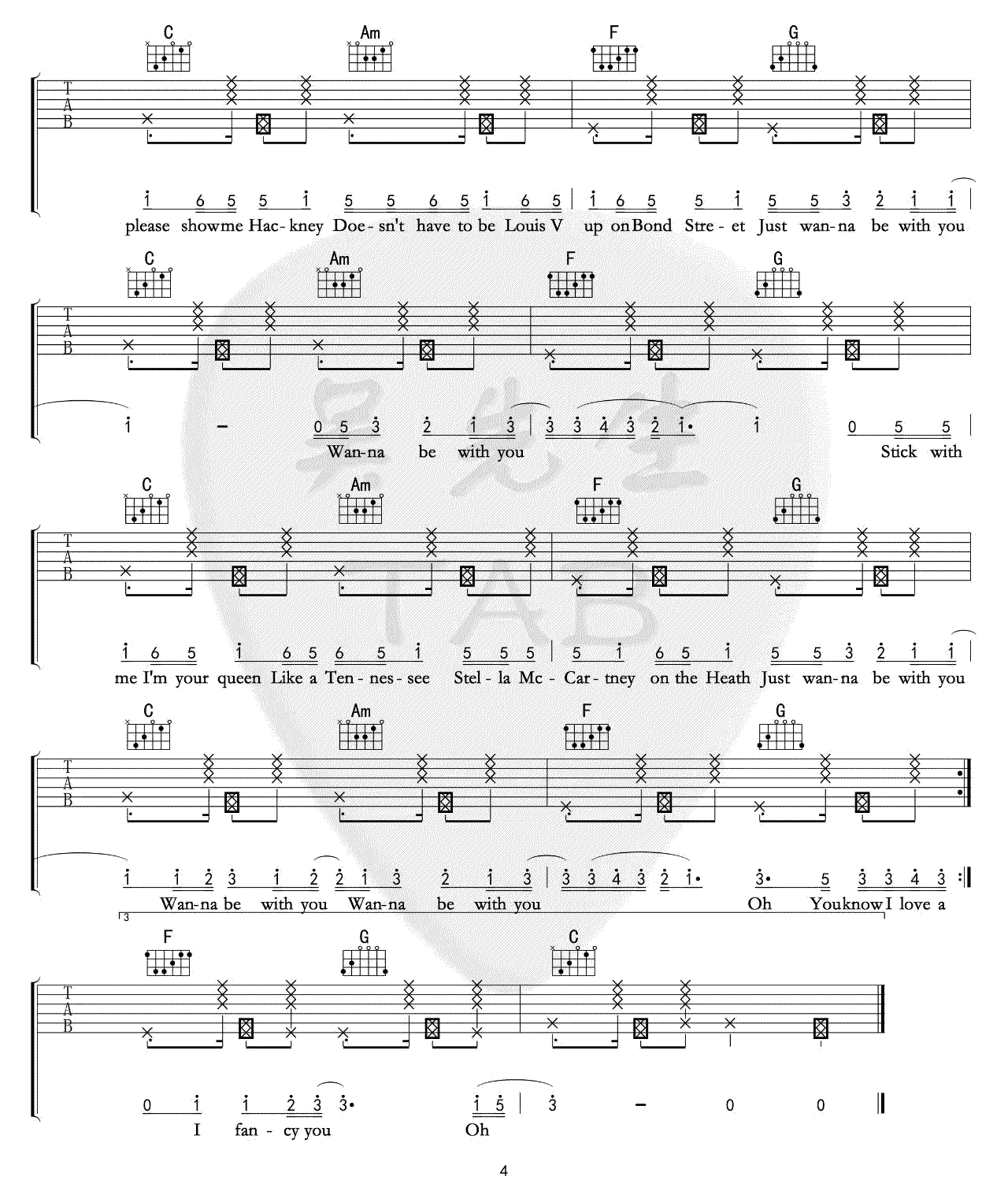 以上就是C调London Boy吉它谱,如果正是您所寻找的Taylor Swift六线高清图片谱,希望能收藏本站,这里会源源不断更新各种的曲谱。