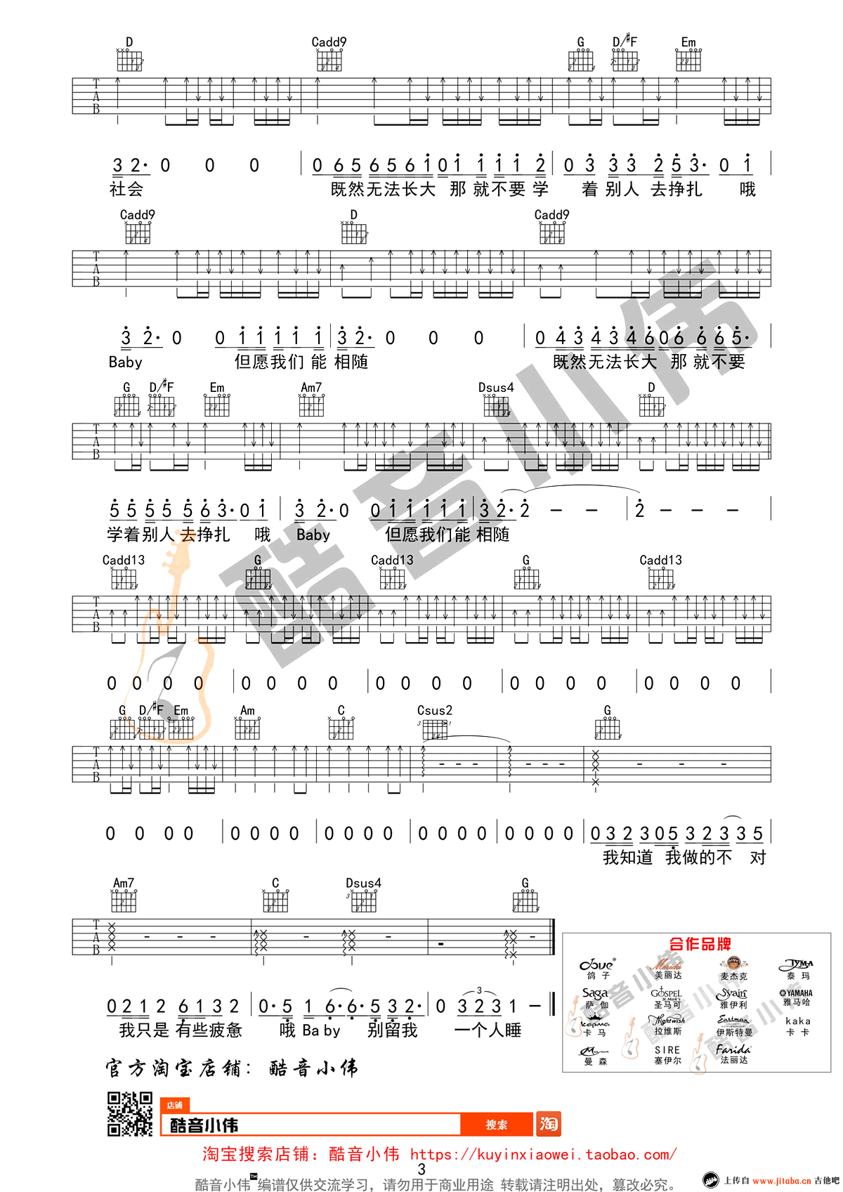 无法长大吉他谱,它是赵雷演唱的原版歌曲,歌曲的节奏非常吸引人.经典歌曲编配的C调指弹简单版吉他谱子,六线简谱是吉他部落收集制作,4/4拍子拍速为60-80,是非常好听简单的入门弹唱曲谱,下面为大家分享高清3张图片谱,有喜欢吉它的朋友欢迎关注!