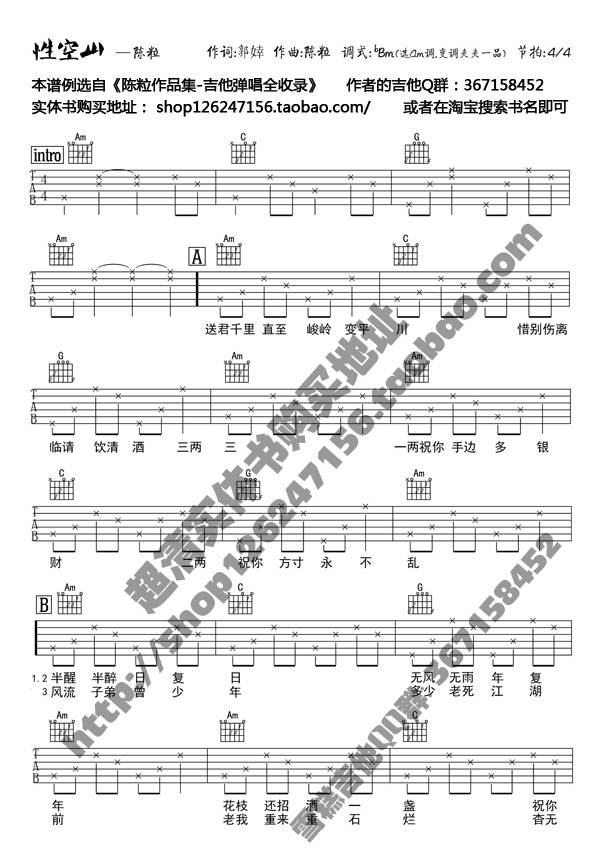 如果您想要学习陈粒演唱的《性空山》的吉他谱,那么您来对地方了。这首弹唱简谱它的歌词是如此的深刻和真实。这个完整版弹唱简谱是由雪糕吉他制谱编配的,适合新手入门学习C调教学吉他谱。这是一首非常好听的歌曲,下面高清图片谱由极网吉它谱更新分享。如果您是吉他爱好者请关注我们的网站!