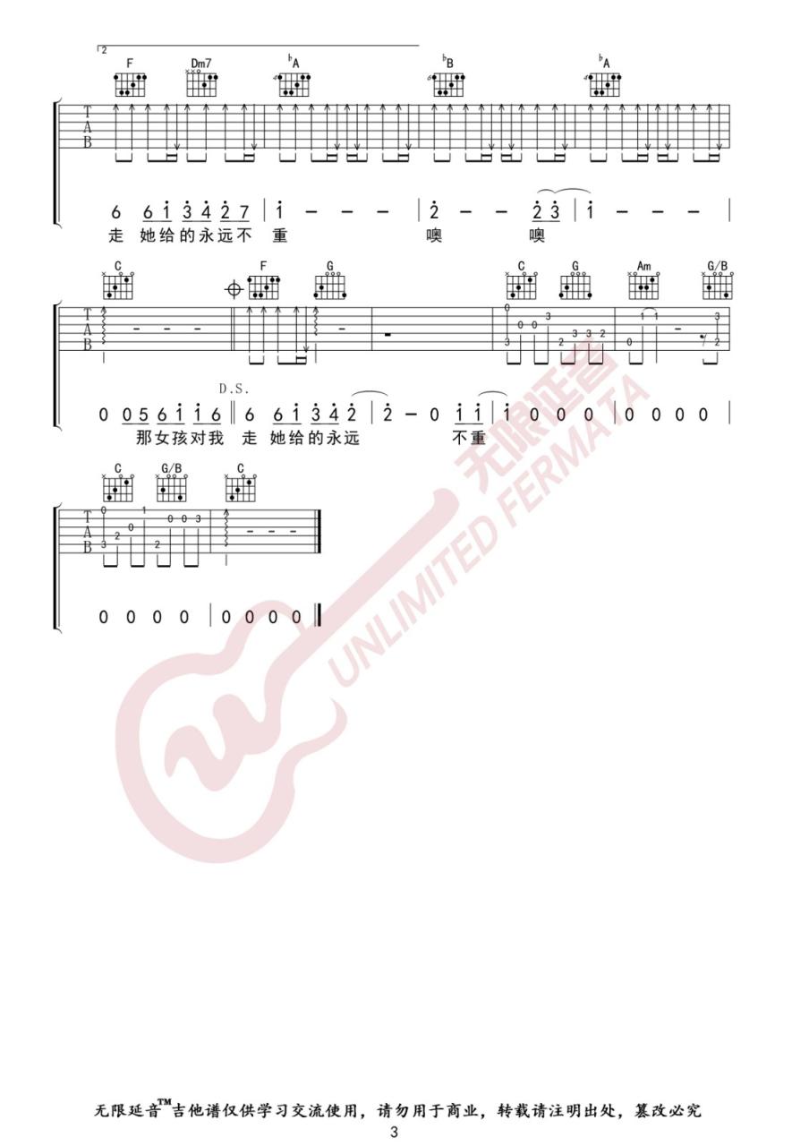 那女孩对我说吉他谱,黄义达歌曲,C调指弹简谱,新手弹唱六线谱