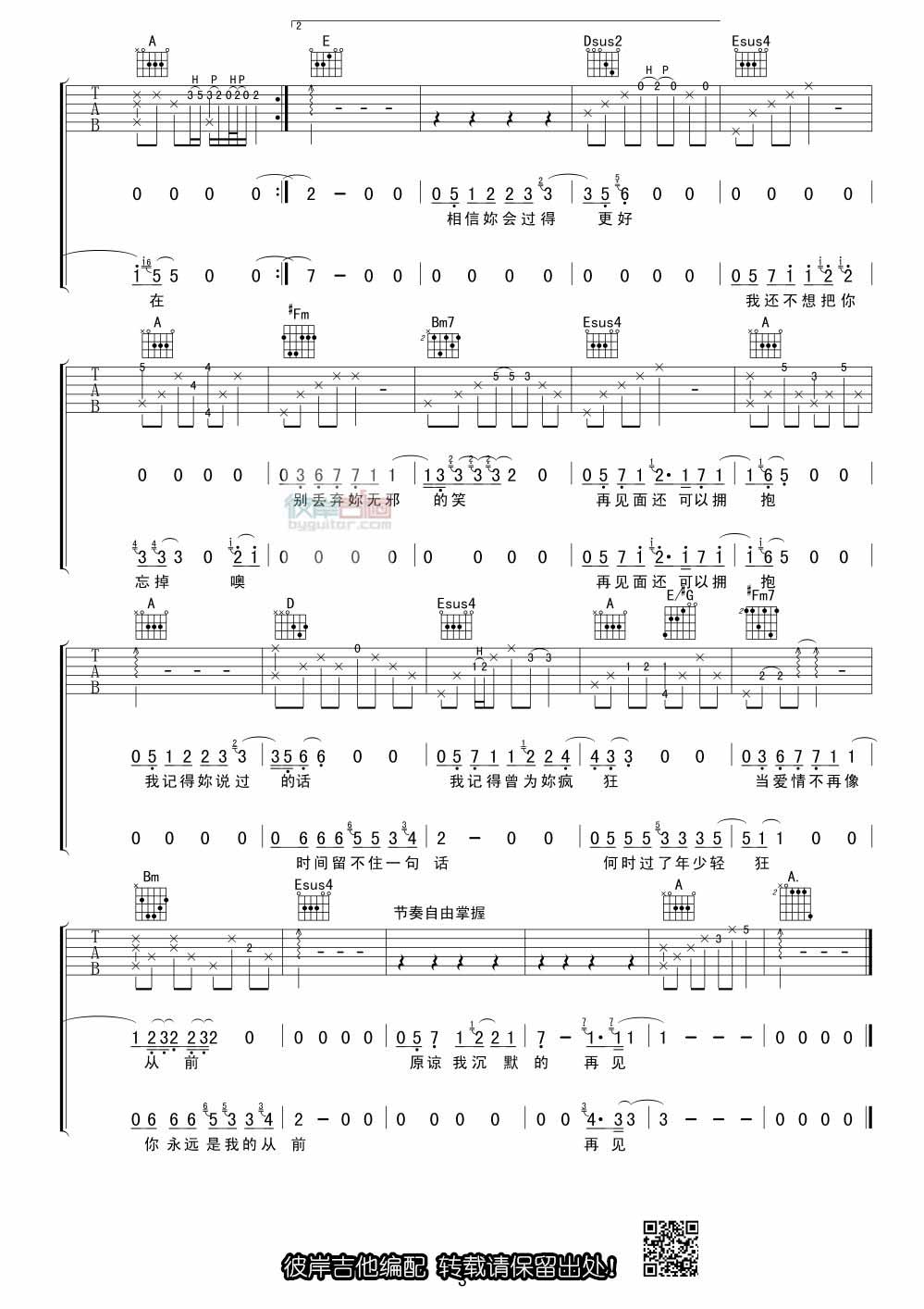 手放开吉他谱,取自演唱的歌曲是经典B调指弹编配的曲谱,非常好听的弹唱曲谱,下面4张高清曲谱由吉曲谱网为大家更新分享,有喜欢吉它的朋友欢迎关注!