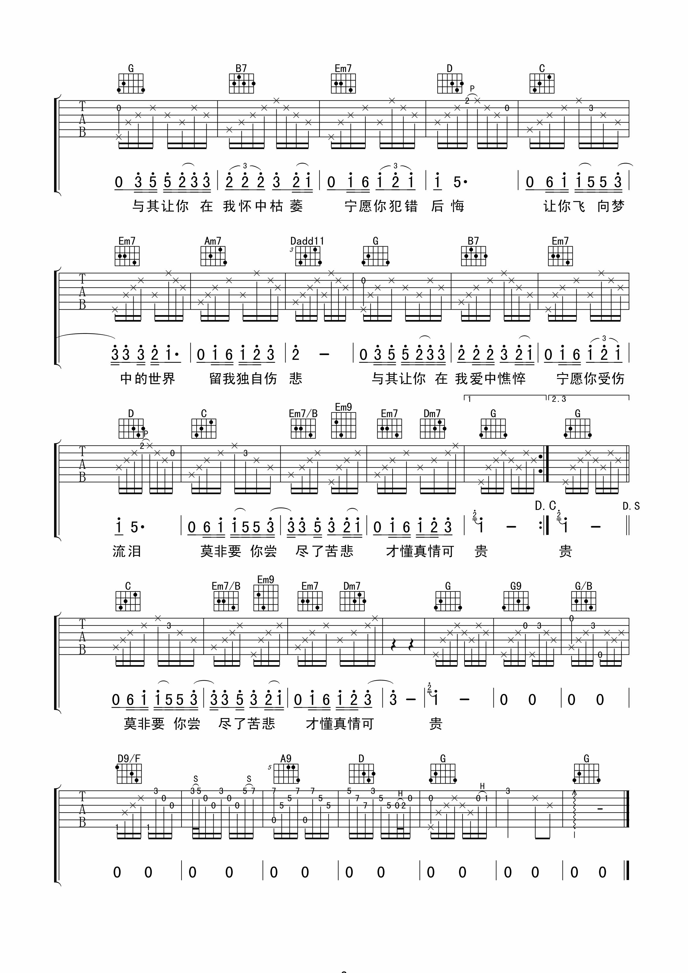 手放开吉他谱,取自演唱的歌曲是经典B调指弹编配的曲谱,非常好听的弹唱曲谱,下面4张高清曲谱由吉曲谱网为大家更新分享,有喜欢吉它的朋友欢迎关注!