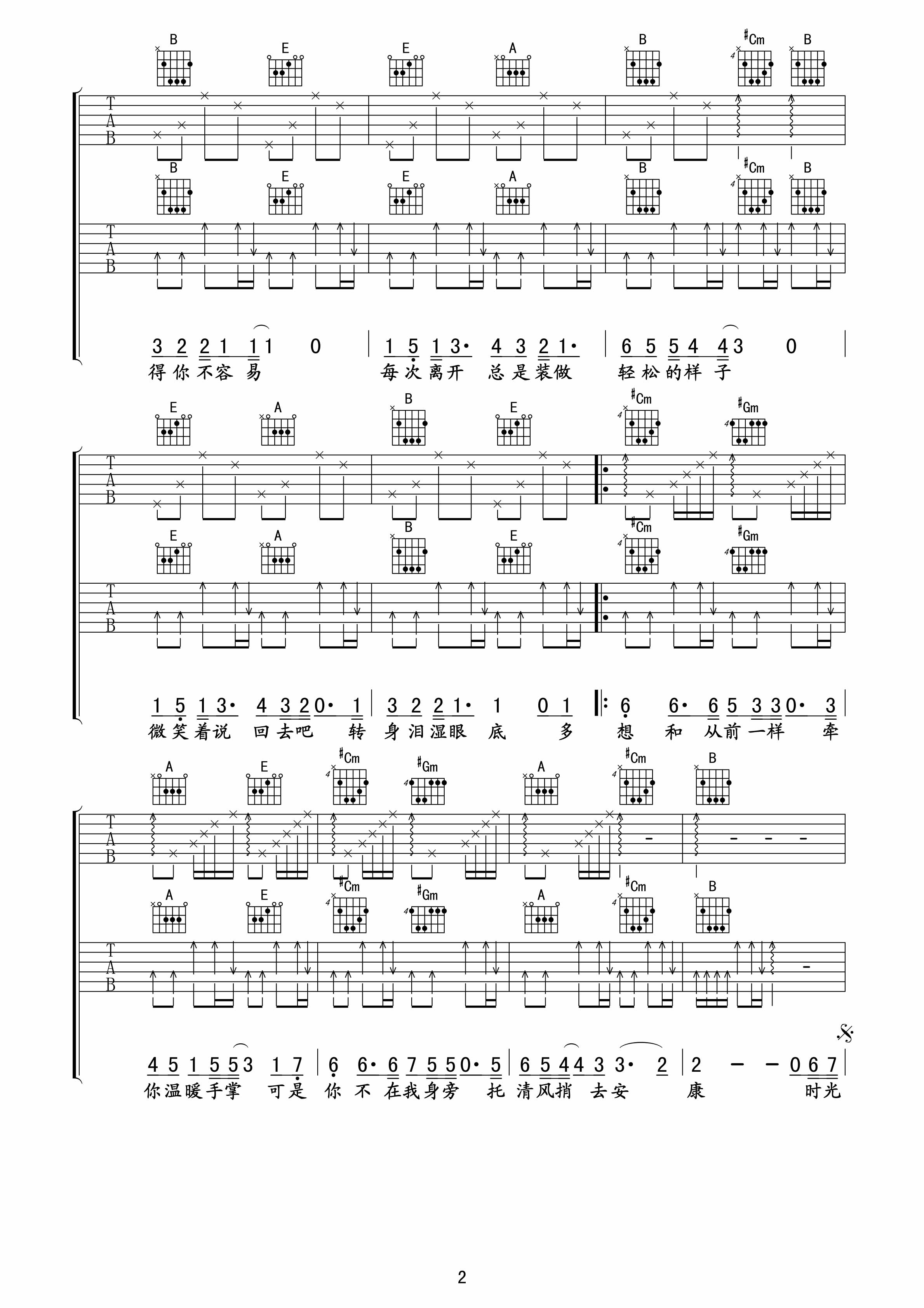 我不会喜欢你吉他谱,取自演唱的歌曲是经典E调指弹编配的曲谱,非常好听的弹唱曲谱,下面4张高清曲谱由吉曲谱网为大家更新分享,有喜欢吉它的朋友欢迎关注!