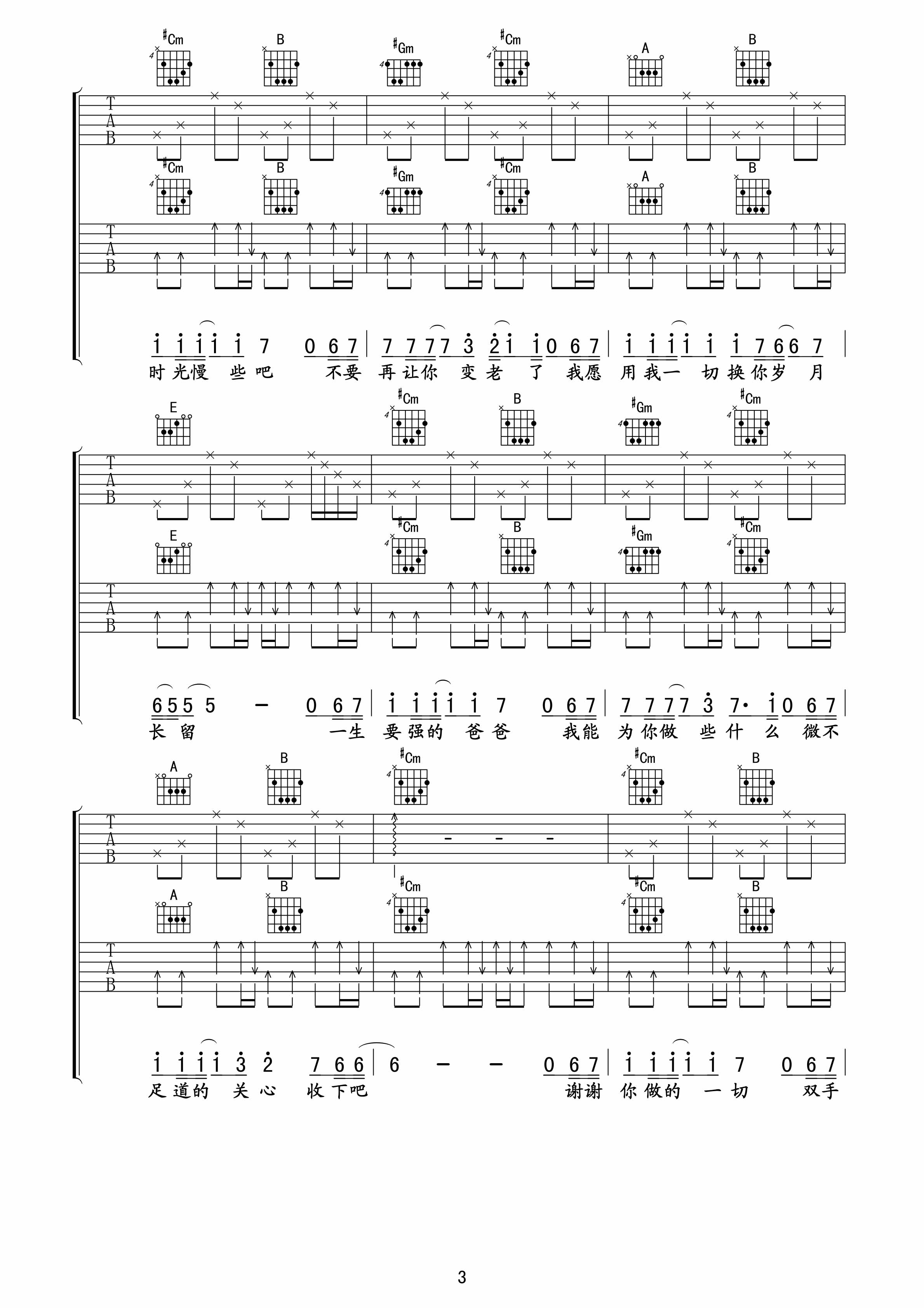 父亲吉他谱,原版歌曲,简单E调弹唱教学,六线谱指弹简谱5张图