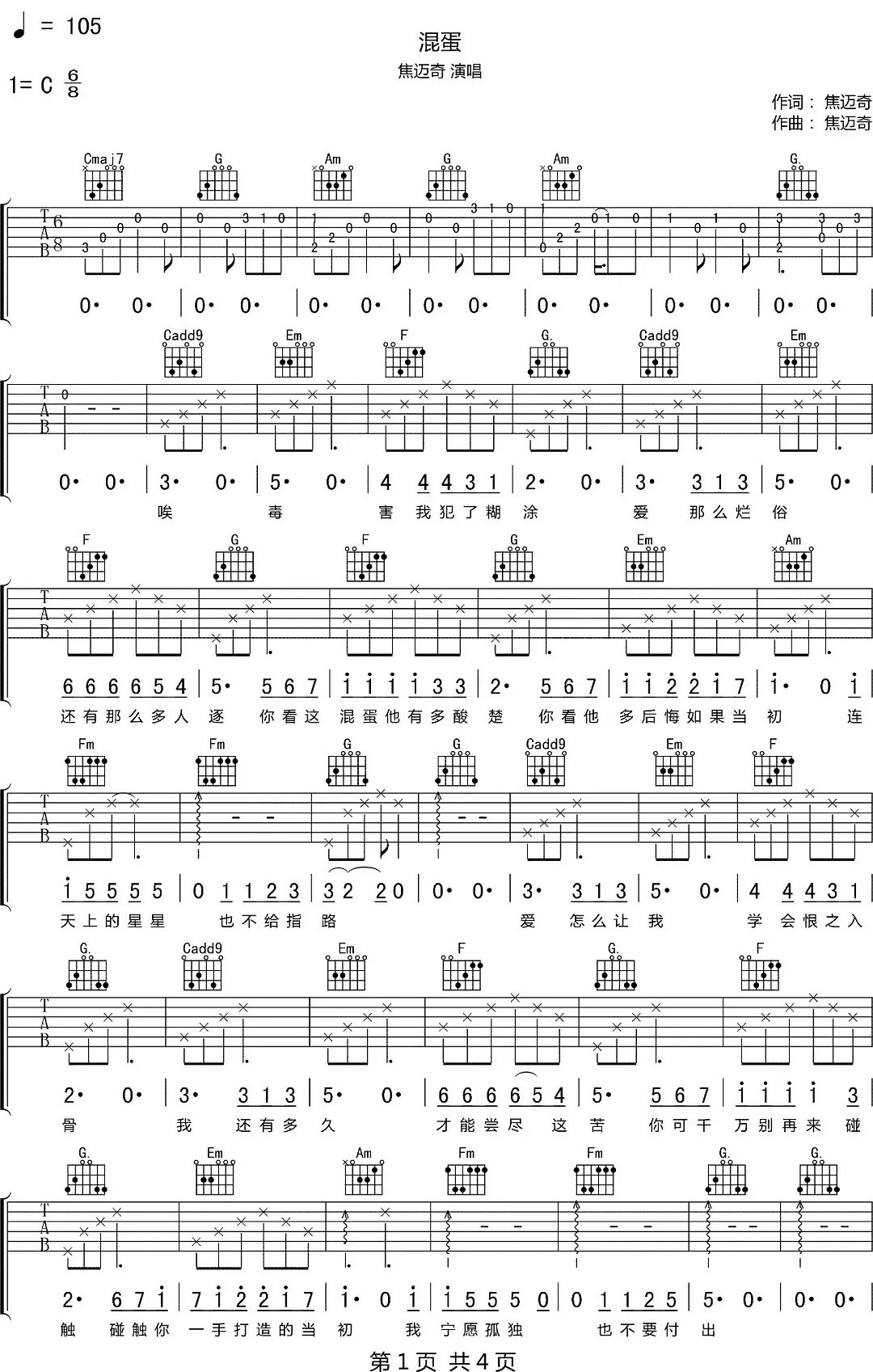 父亲吉他谱,取自演唱的歌曲是经典C调指弹编配的曲谱,非常好听的弹唱曲谱,下面3张高清曲谱由吉曲谱网为大家更新分享,有喜欢吉它的朋友欢迎关注!