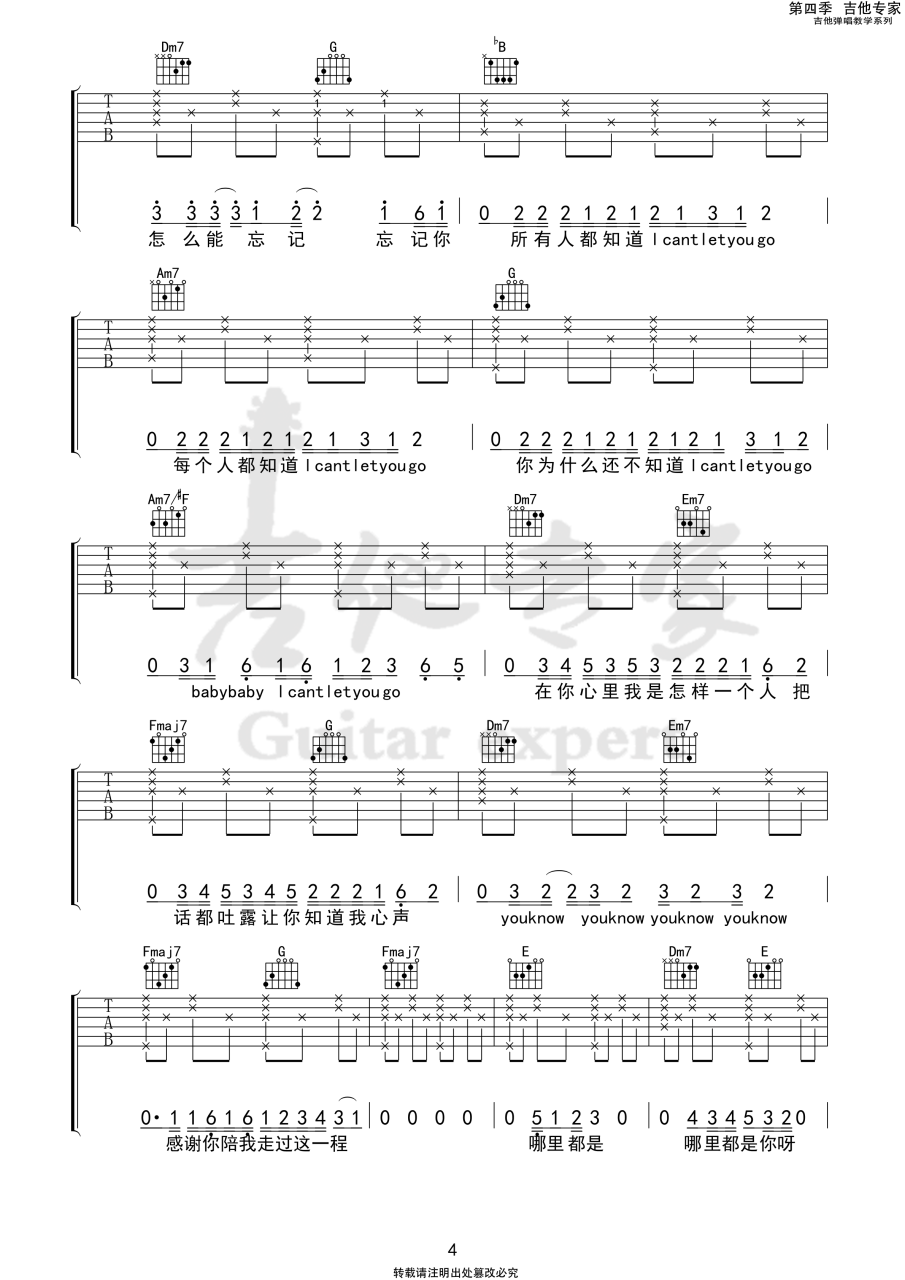 永远都会在吉他谱,原版歌曲,简单G调弹唱教学,六线谱指弹简谱3张图