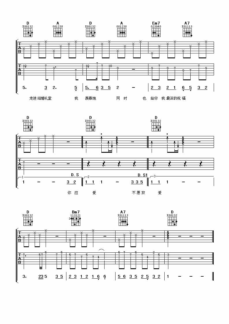 不分手的恋吉他谱,取自演唱的歌曲是经典D调指弹编配的曲谱,非常好听的弹唱曲谱,下面3张高清曲谱由吉曲谱网为大家更新分享,有喜欢吉它的朋友欢迎关注!