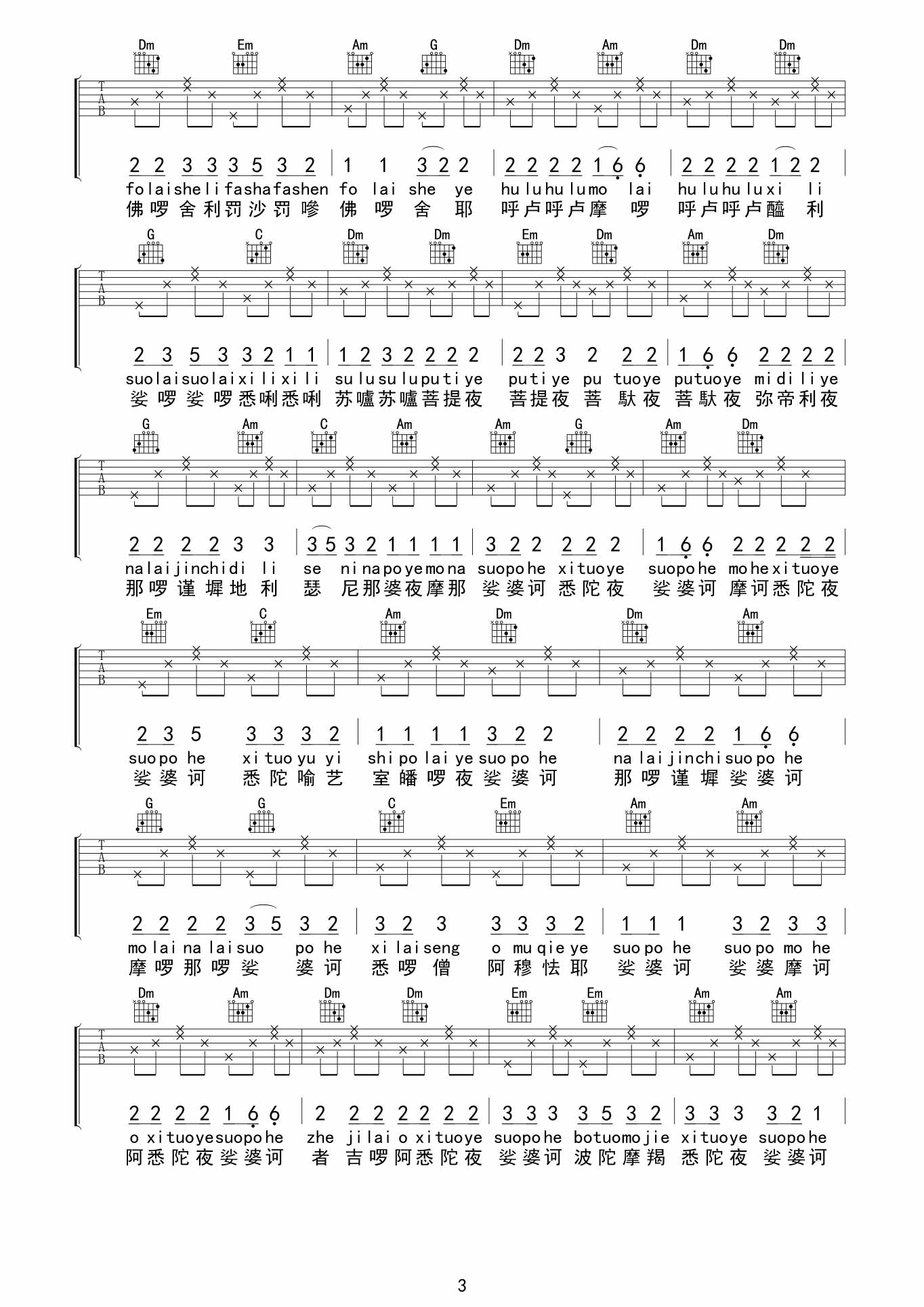 大悲咒吉他谱,原版歌曲,简单E调弹唱教学,六线谱指弹简谱4张图