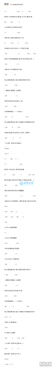 无尽吉他谱,Supper Moment歌曲,F调指弹简谱,新手弹唱和弦谱