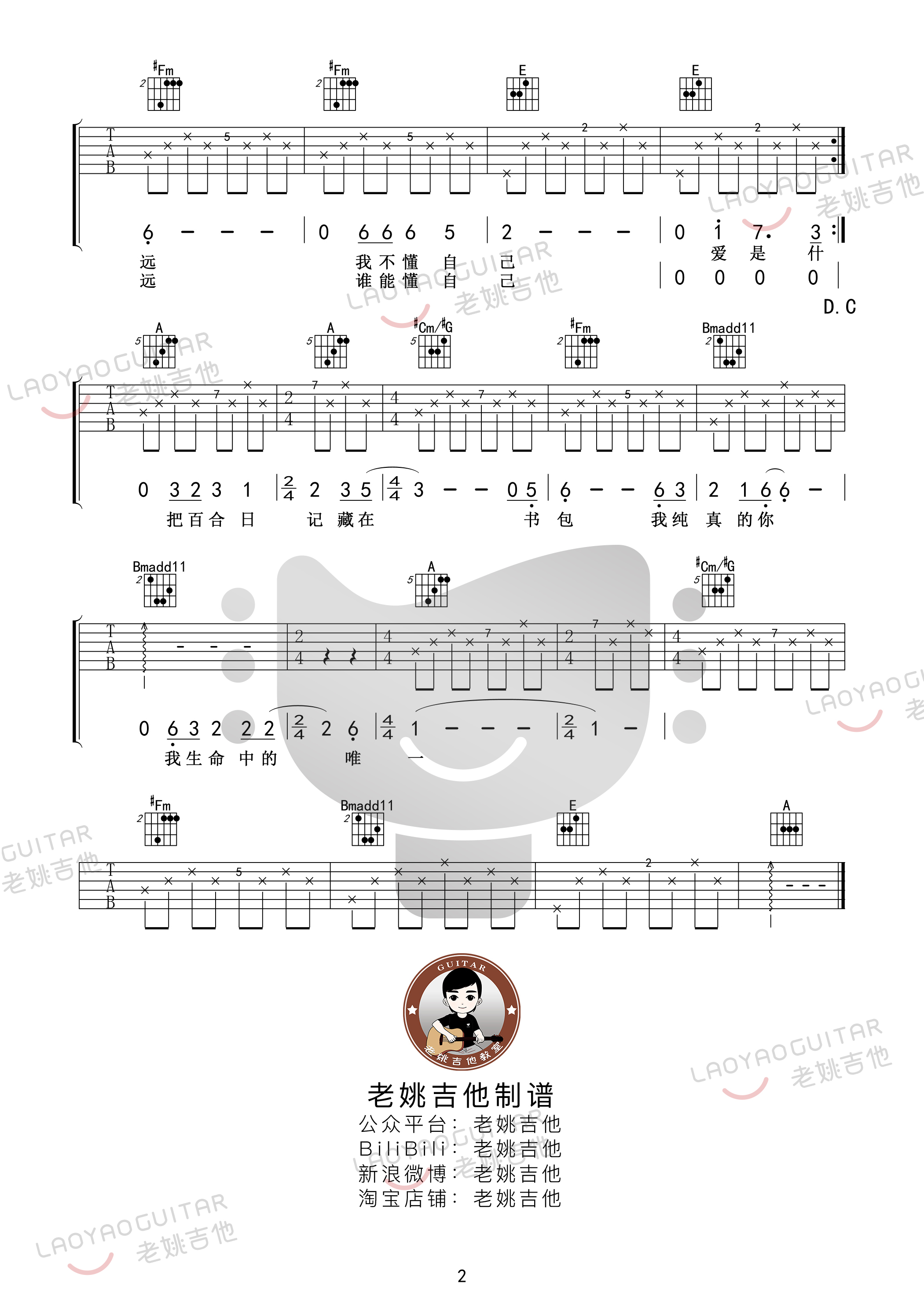 靠近吉他谱,取自演唱的歌曲是经典A调指弹编配的曲谱,非常好听的弹唱曲谱,下面2张高清曲谱由吉曲谱网为大家更新分享,有喜欢吉它的朋友欢迎关注!