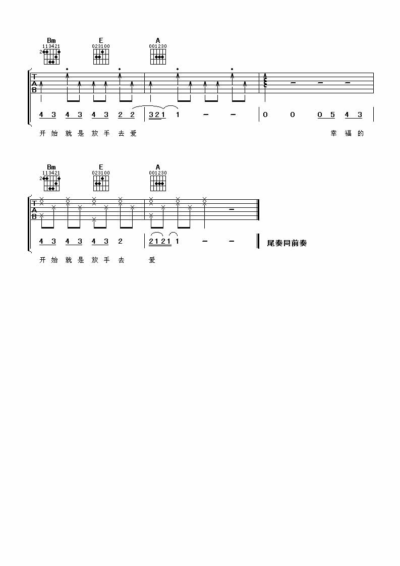 手放开吉他谱,取自演唱的歌曲是经典B调指弹编配的曲谱,非常好听的弹唱曲谱,下面4张高清曲谱由吉曲谱网为大家更新分享,有喜欢吉它的朋友欢迎关注!