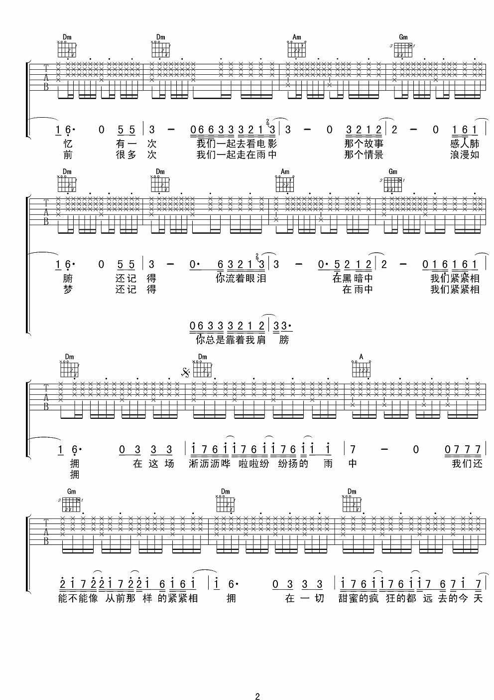 在雨中吉他谱,原版歌曲,简单F调弹唱教学,六线谱指弹简谱3张图