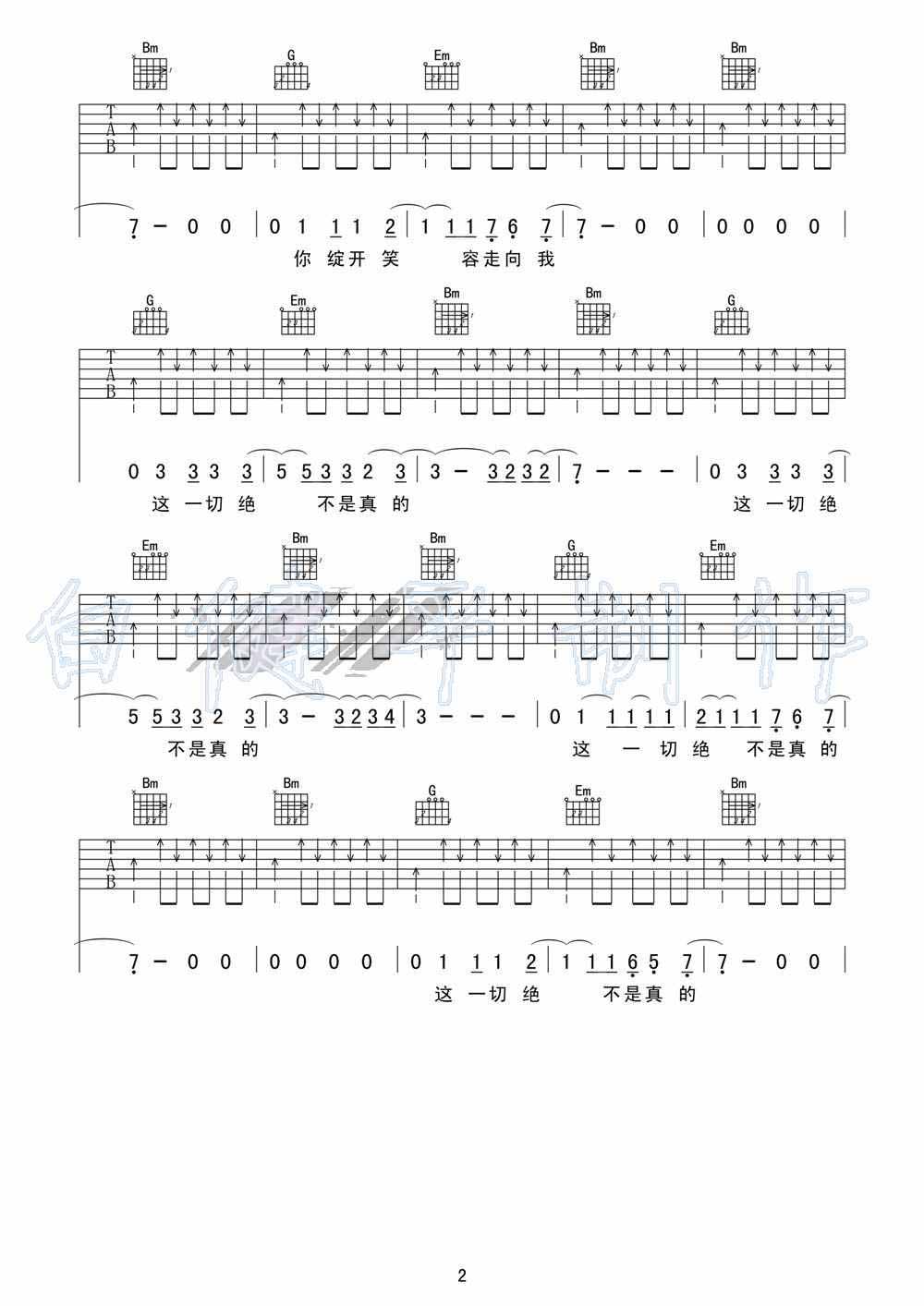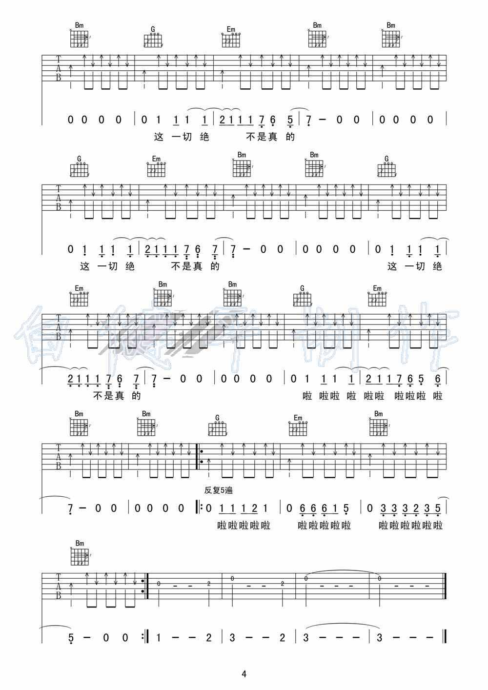 这一切都不是真的吉他谱,它是演唱的歌曲,是一首经典歌曲编配的G调指弹六线简谱,歌曲传达的情感非常真实。是非常好听又简单的吉他弹唱曲谱,下面4张高清完整版图片谱由曲谱网为大家更新分享,有喜欢吉它的朋友欢迎关注!