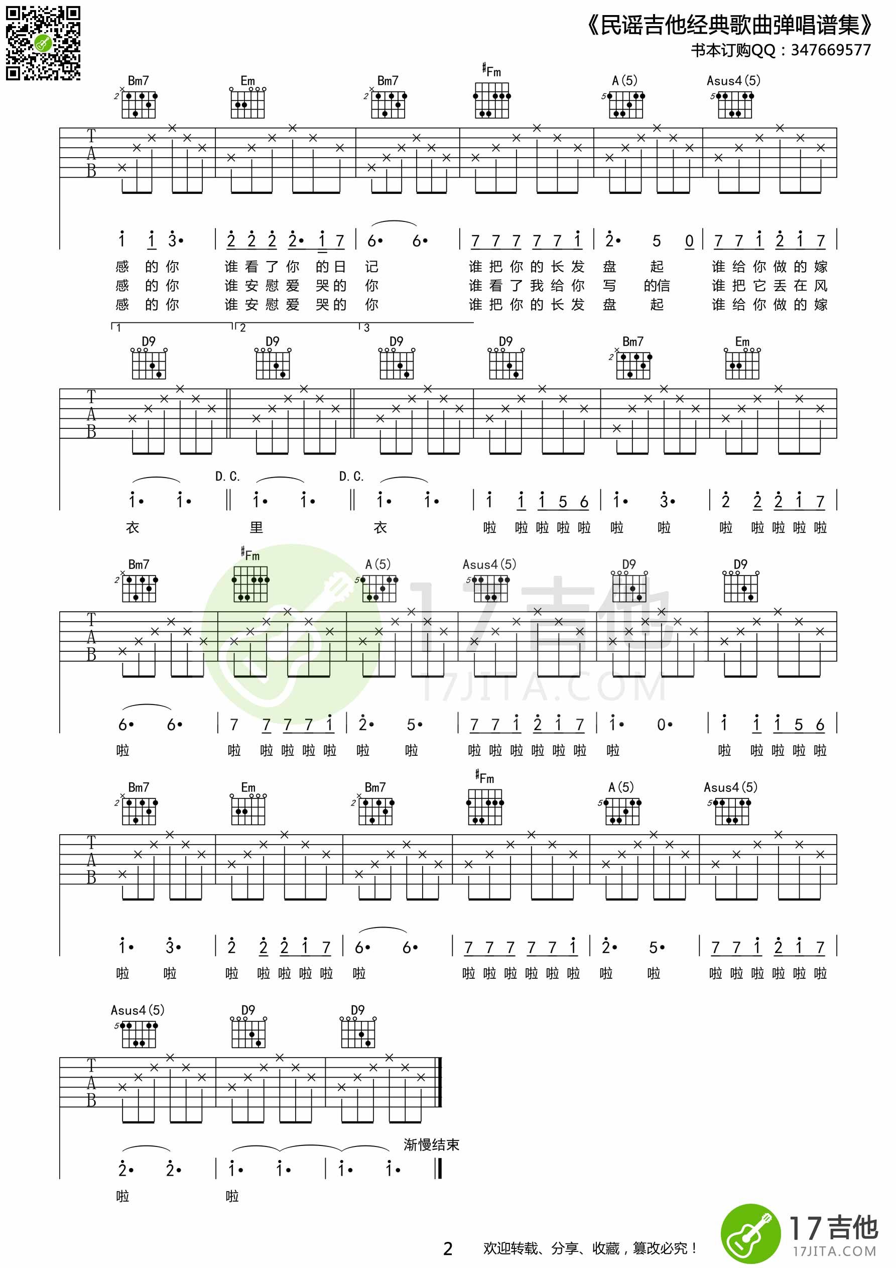 本谱已收录至《民谣吉他经典歌曲弹唱谱集》书本订购详情请访问:http:///ba/3606.html