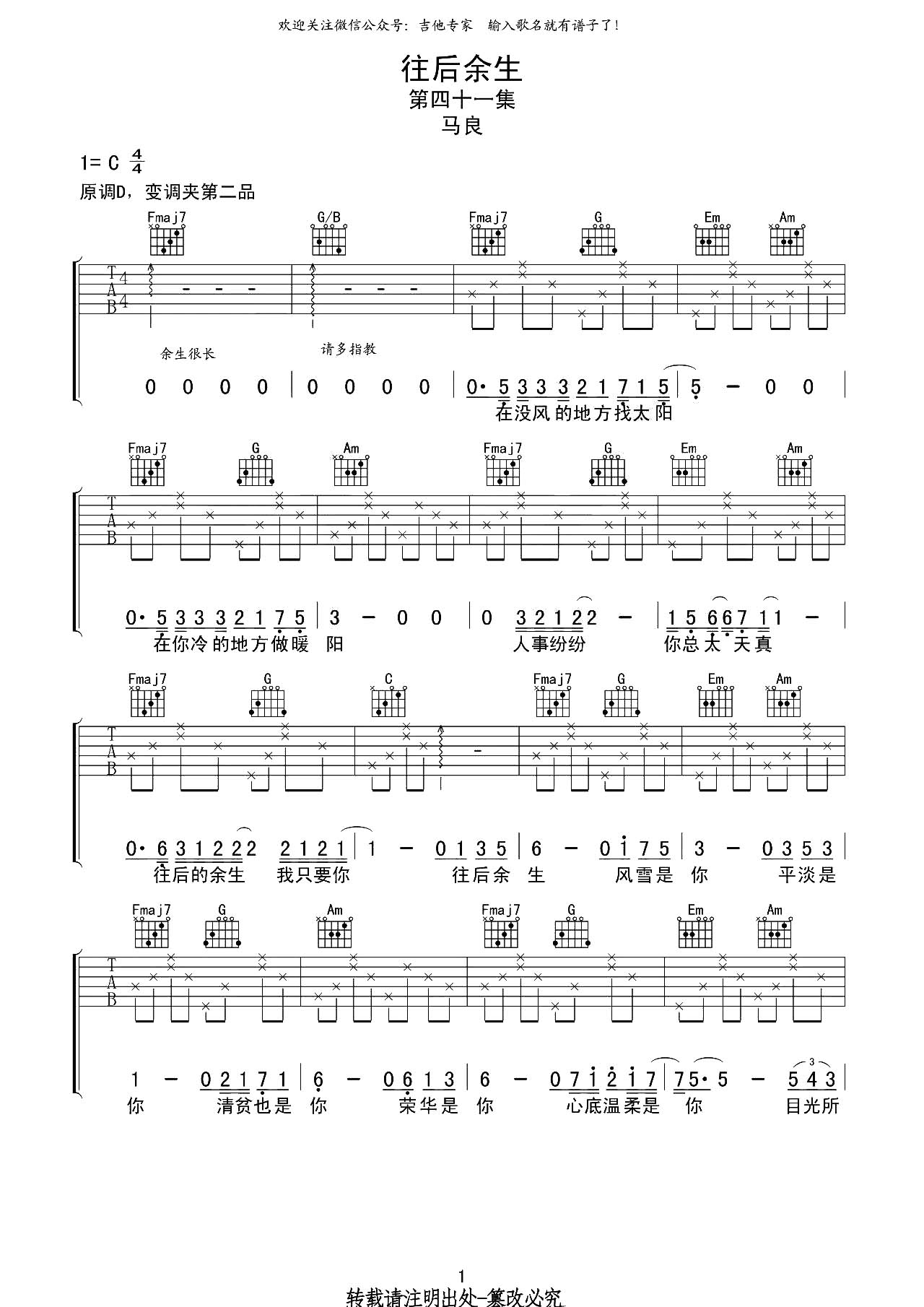 永远都会在吉他谱,取自演唱的歌曲是经典G调指弹编配的曲谱,非常好听的弹唱曲谱,下面3张高清曲谱由吉曲谱网为大家更新分享,有喜欢吉它的朋友欢迎关注!