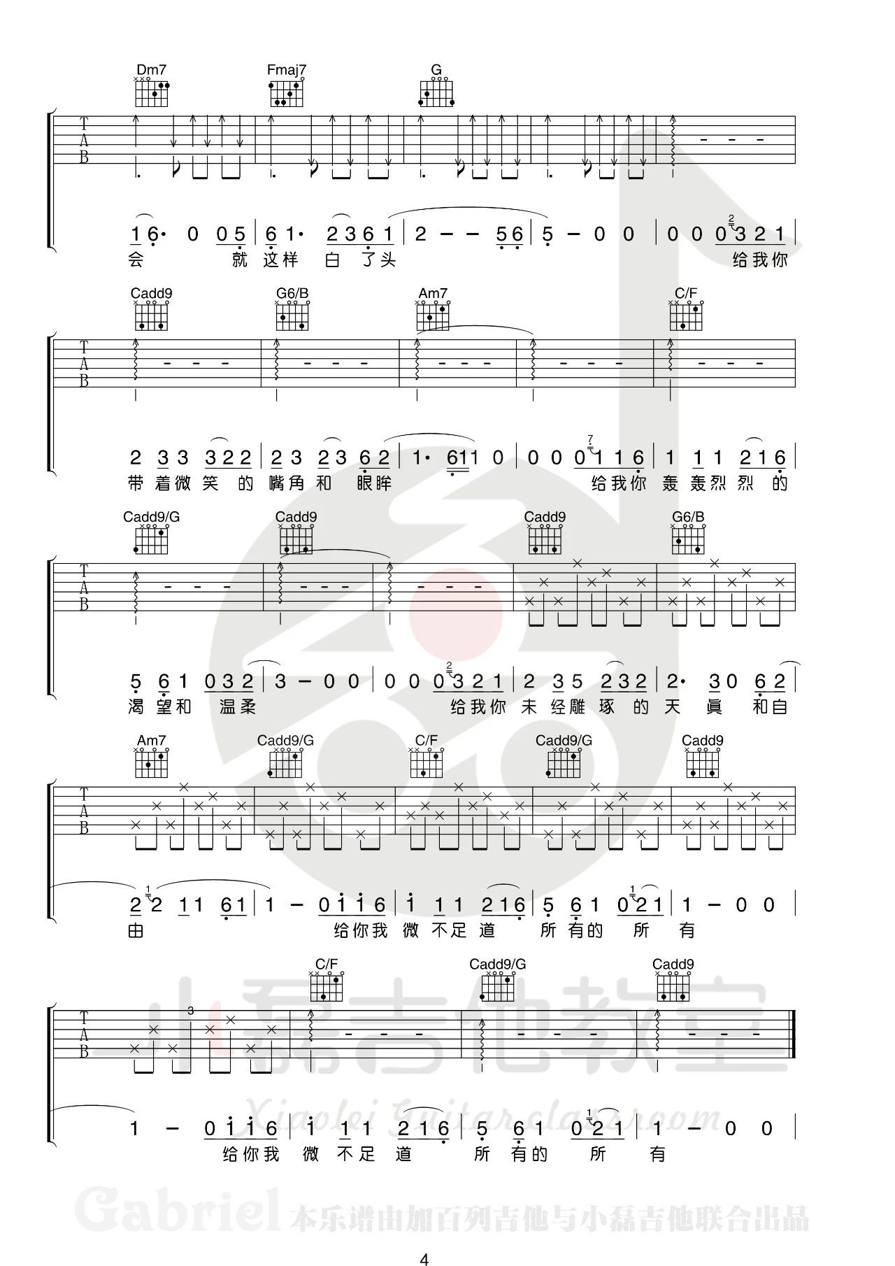 给你给我吉他谱,它是毛不易演唱的原版歌曲它的歌词和旋律都非常动人.,由小磊吉他制谱,是一首经典简单的吉他谱,适合新手学习和弦指弹的C调编配曲谱,弹唱时可,本次教学采用C调,是非常好听的弹唱曲谱,下面完整版高清六线谱由吉它谱大全为大家更新分享。有喜欢吉它的朋友欢迎关注!