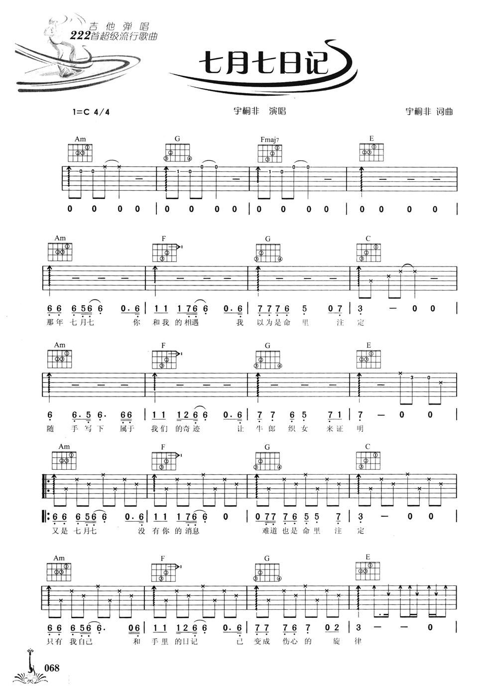 以上就是4/4节拍 C调版的七月七日记弹唱简谱,如果正是您所寻找的六线高清图片谱,希望能收藏本站,这里会完全免费且源源不断更新各种宇桐非简单入门曲谱