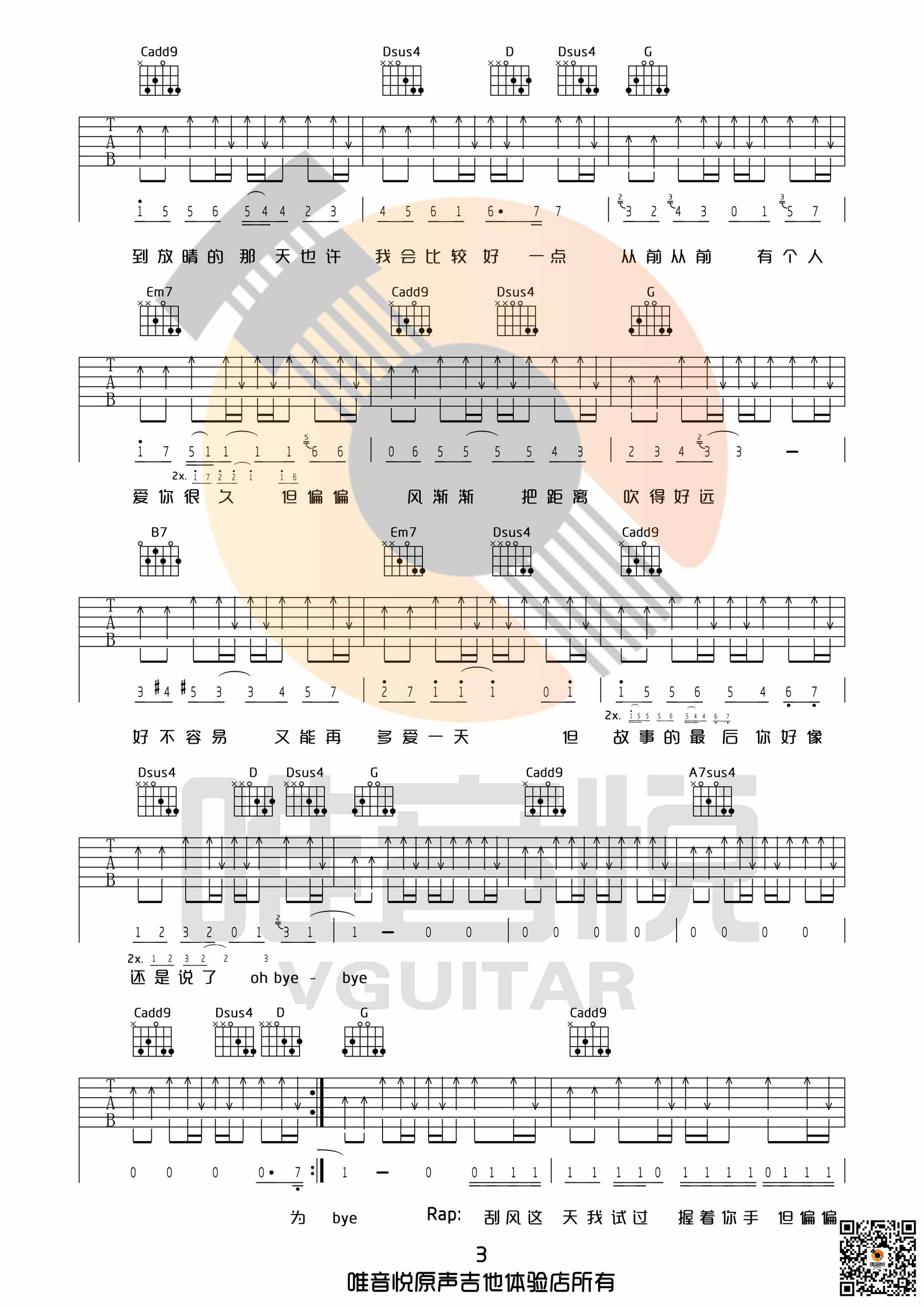 永远都会在吉他谱,原版歌曲,简单G调弹唱教学,六线谱指弹简谱3张图
