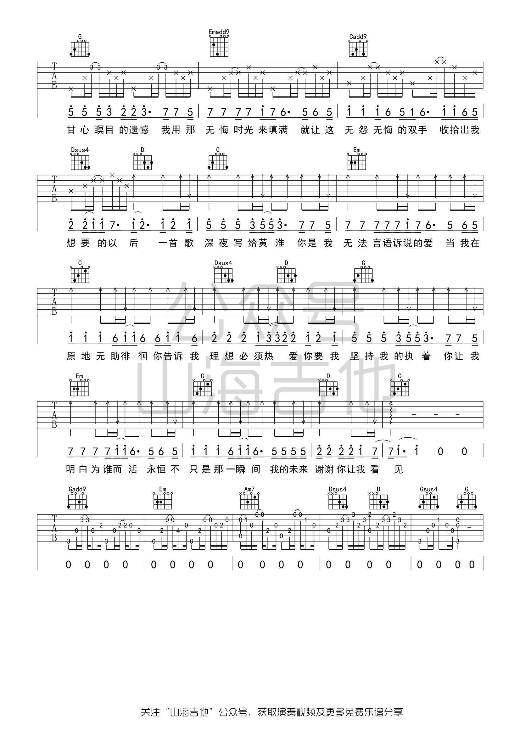 以上就是G调版的写给黄淮吉他谱_解忧邵帅_G调指法吉他弹唱谱 ,如果正是您所寻找的六线高清图片谱,希望能收藏本站,这里会源源不断更新各种的曲谱。如果你已经掌握了一定的弹奏技巧,那么扫弦、指弹、和弦、指法等更高级的技巧也能在吉它谱网站中找到对应的教程和独奏谱子