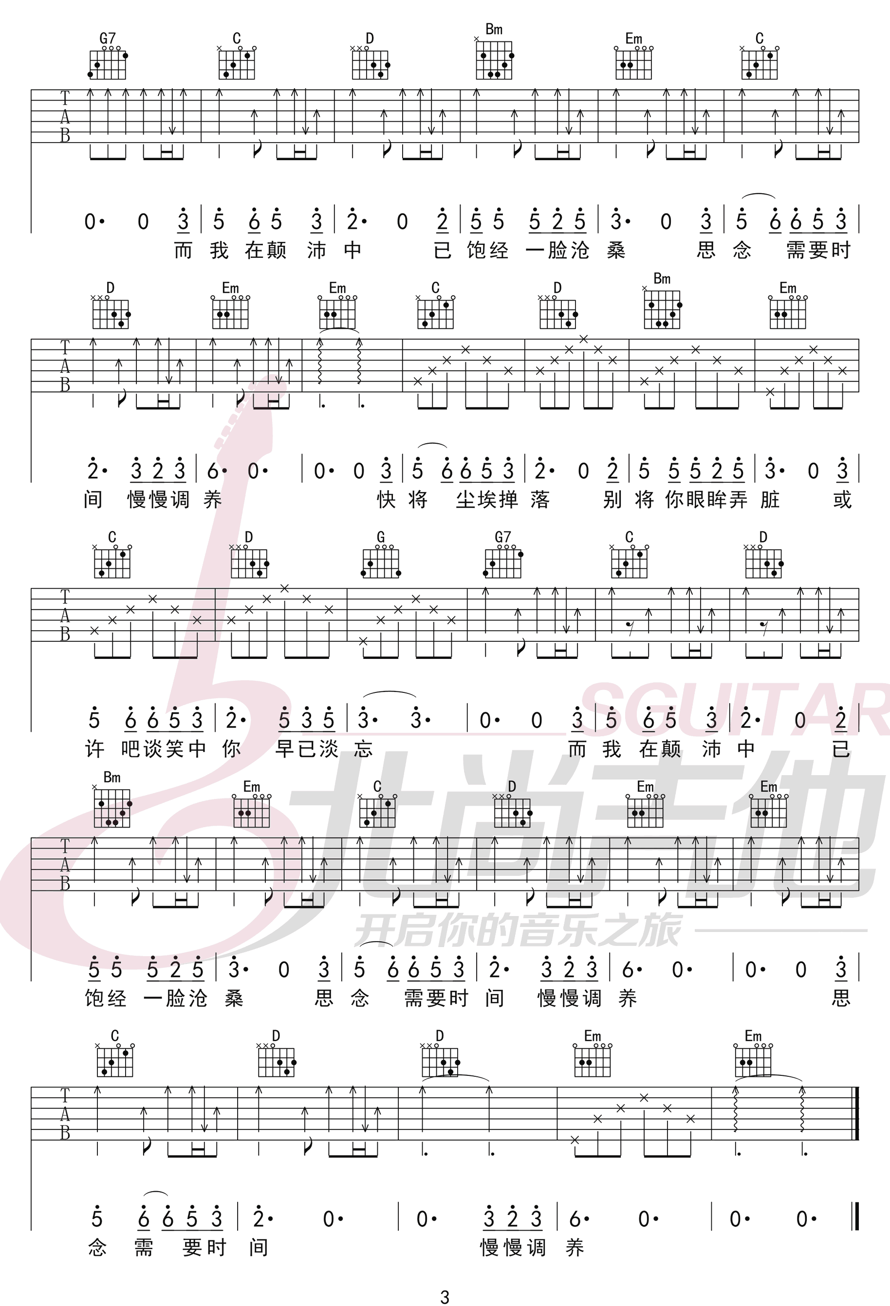 静止吉他谱,原版歌曲,简单G调弹唱教学,六线谱指弹简谱4张图