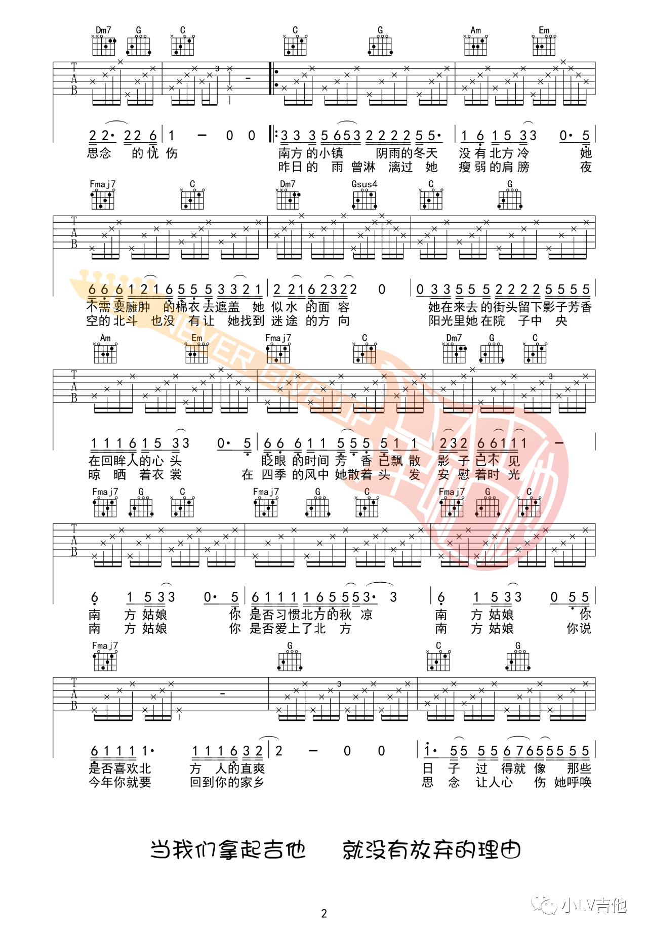 南方姑娘吉他谱,原版歌曲,简单C调弹唱教学,六线谱指弹简谱2张图