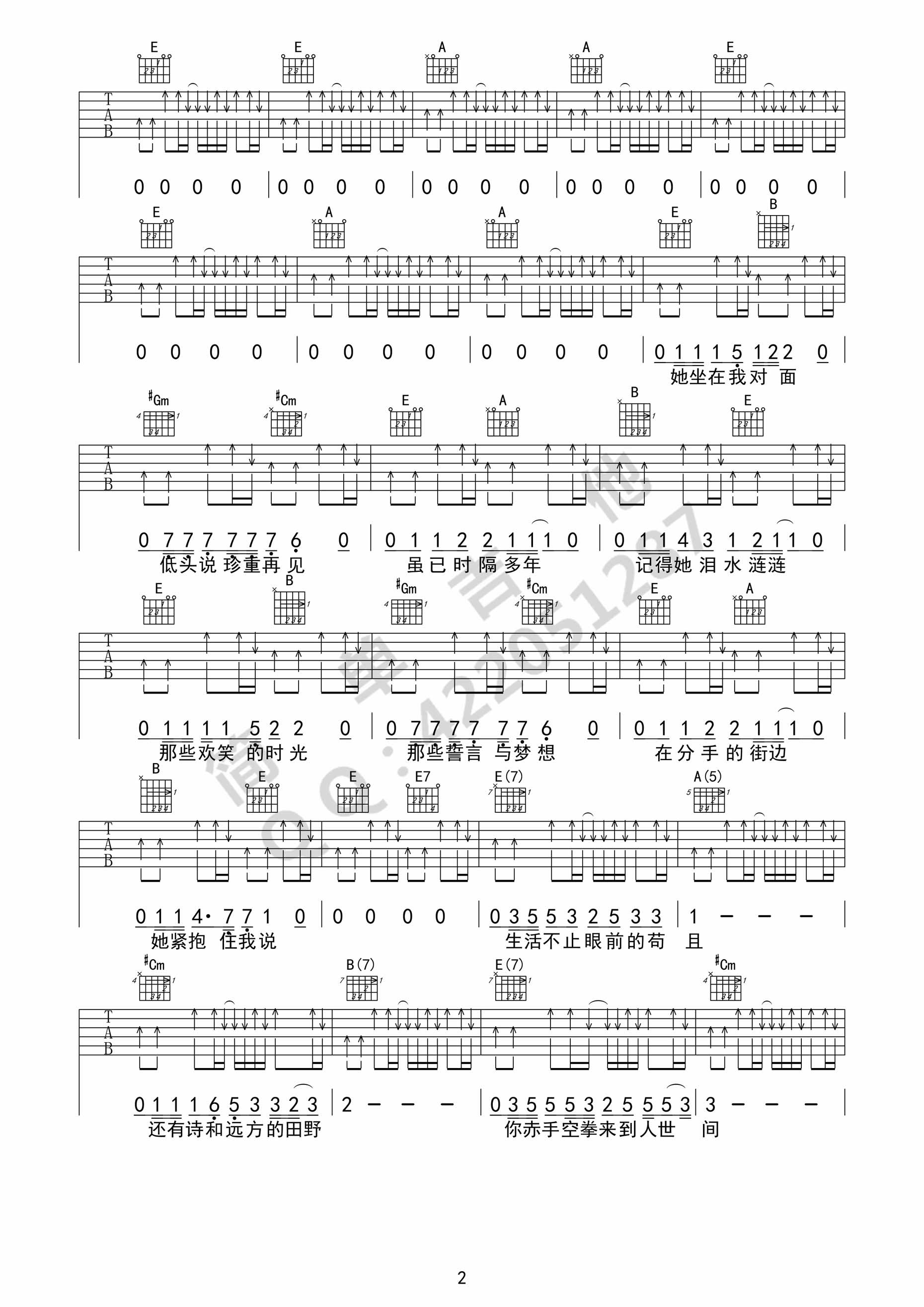 靠近吉他谱,取自演唱的歌曲是经典A调指弹编配的曲谱,非常好听的弹唱曲谱,下面2张高清曲谱由吉曲谱网为大家更新分享,有喜欢吉它的朋友欢迎关注!